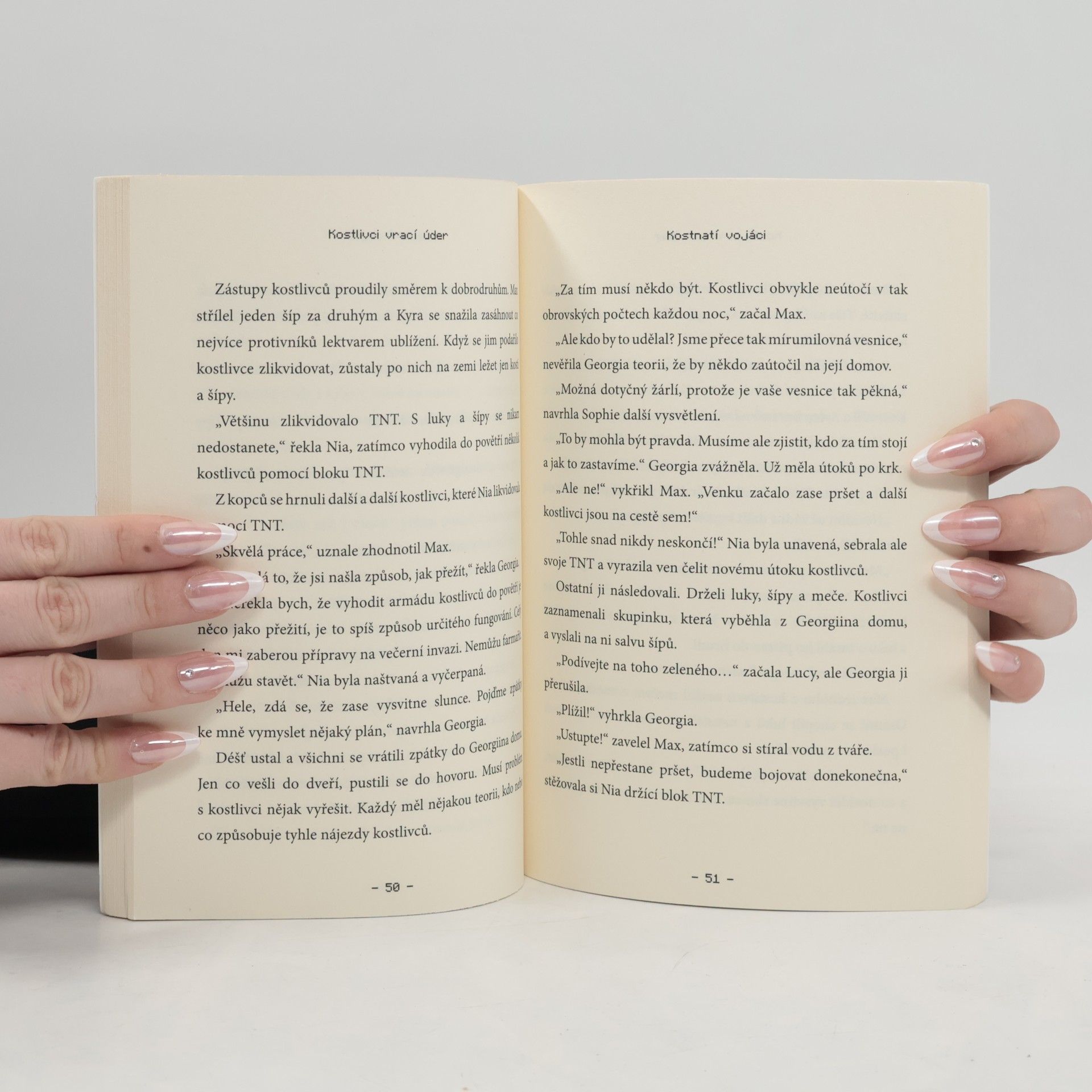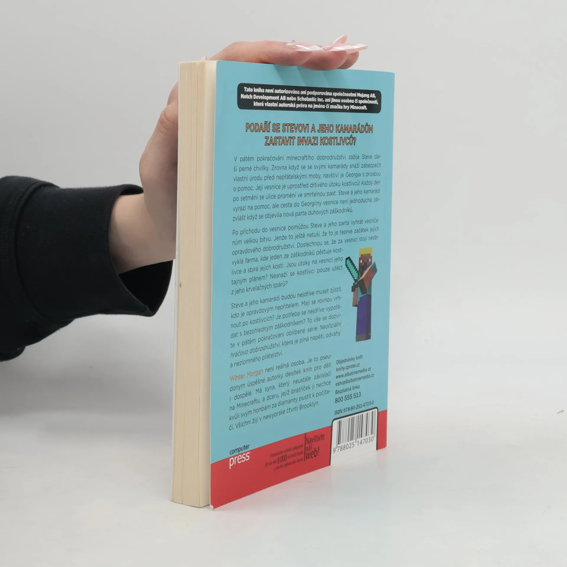 V pátém pokračování minecraftího dobrodružství se Steve a jeho přátelé snaží ochránit svou úrodu před nepřátelskými moby, když je navštíví Georgia s prosbou o pomoc. Její vesnice čelí útoku kostlivců, a tak se Steve a jeho parta vydávají na pomoc. Cesta do vesnice však není jednoduchá, obzvlášť když se objeví nová skupina duhových záškodníků. Po příjezdu do vesnice pomohou vyhrát důležitou bitvu, ale brzy zjistí, že to je teprve začátek. Doslechnou se o neobvyklé farmě za vesnicí, kde jeden ze záškodníků pěstuje kostlivce a sbírá jejich kosti. Steve a jeho přátelé se musí rozhodnout, zda se nejprve vypořádají s bezohledným záškodníkem, nebo se vrhnou po kostlivcích. Páté pokračování série je plné napětí, odvahy a přátelství. Winter Morgan, autorka, která stojí za tímto příběhem, je známá svými knihami pro děti i dospělé a žije v newyorské čtvrti Brooklyn se svými dětmi, z nichž jedno je vášnivým hráčem Minecraftu.