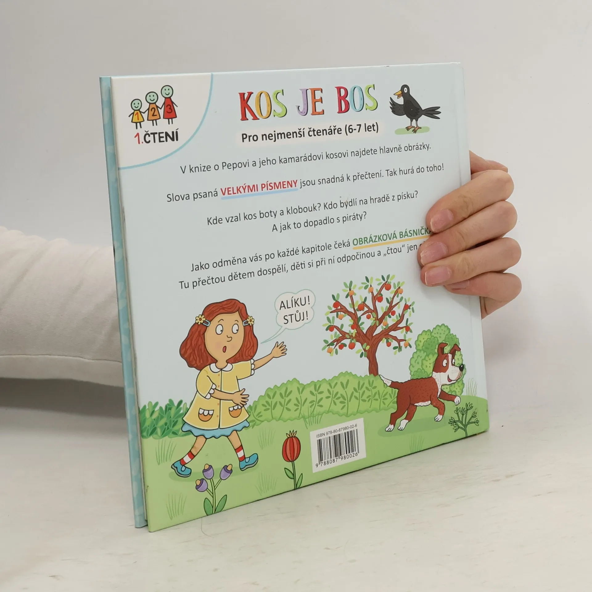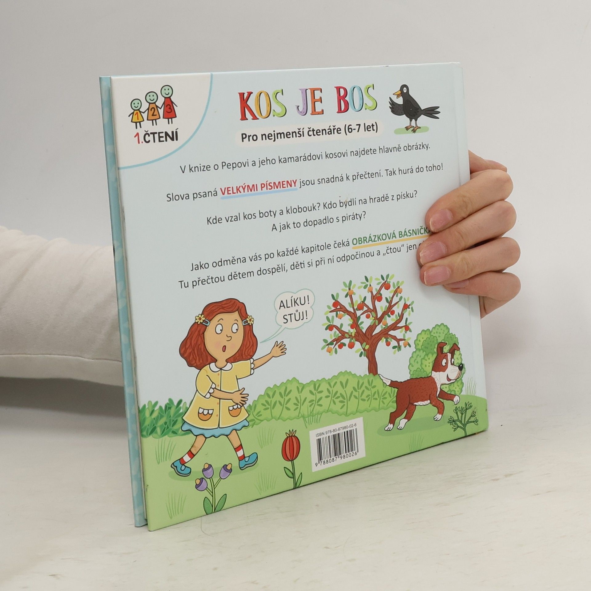 1. čtení - pro nejmenší čtenáře (6-7 let). V knize o Pepovi a jeho kamarádovi kosovi najdete hlavně obrázky. Slova psaná velkými písmeny jsou snadná k přečtení. Tak hurá do toho! Kde vzal kos boty a klobouk? Kdo bydlí na hradě z písku? A jak to dopadlo s piráty? Jako odměna vás po každé kapitole čeká obrázková básnička. Tu přečtou dětem dospělí, děti si při ní odpočinou a "čtou" jen obrázky.