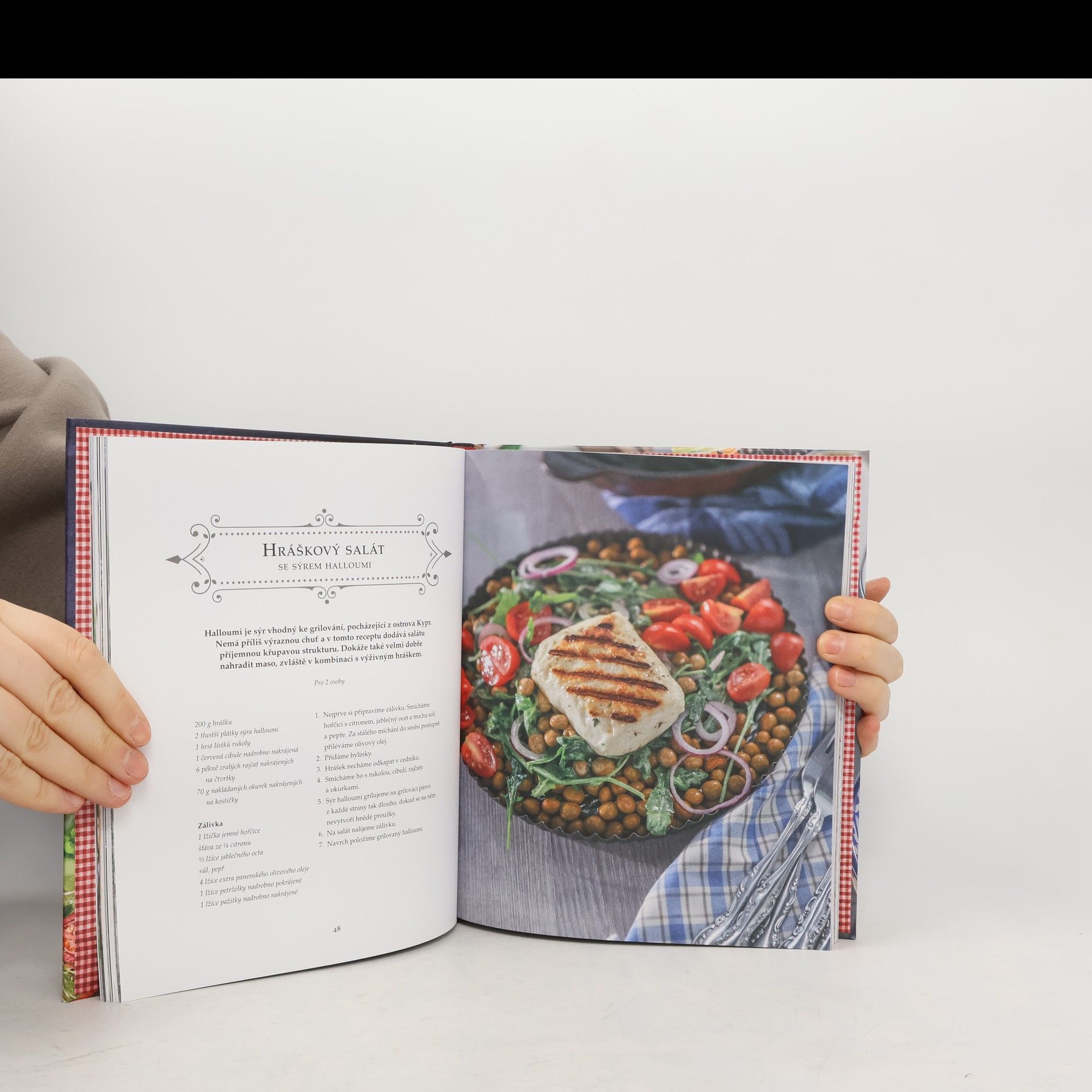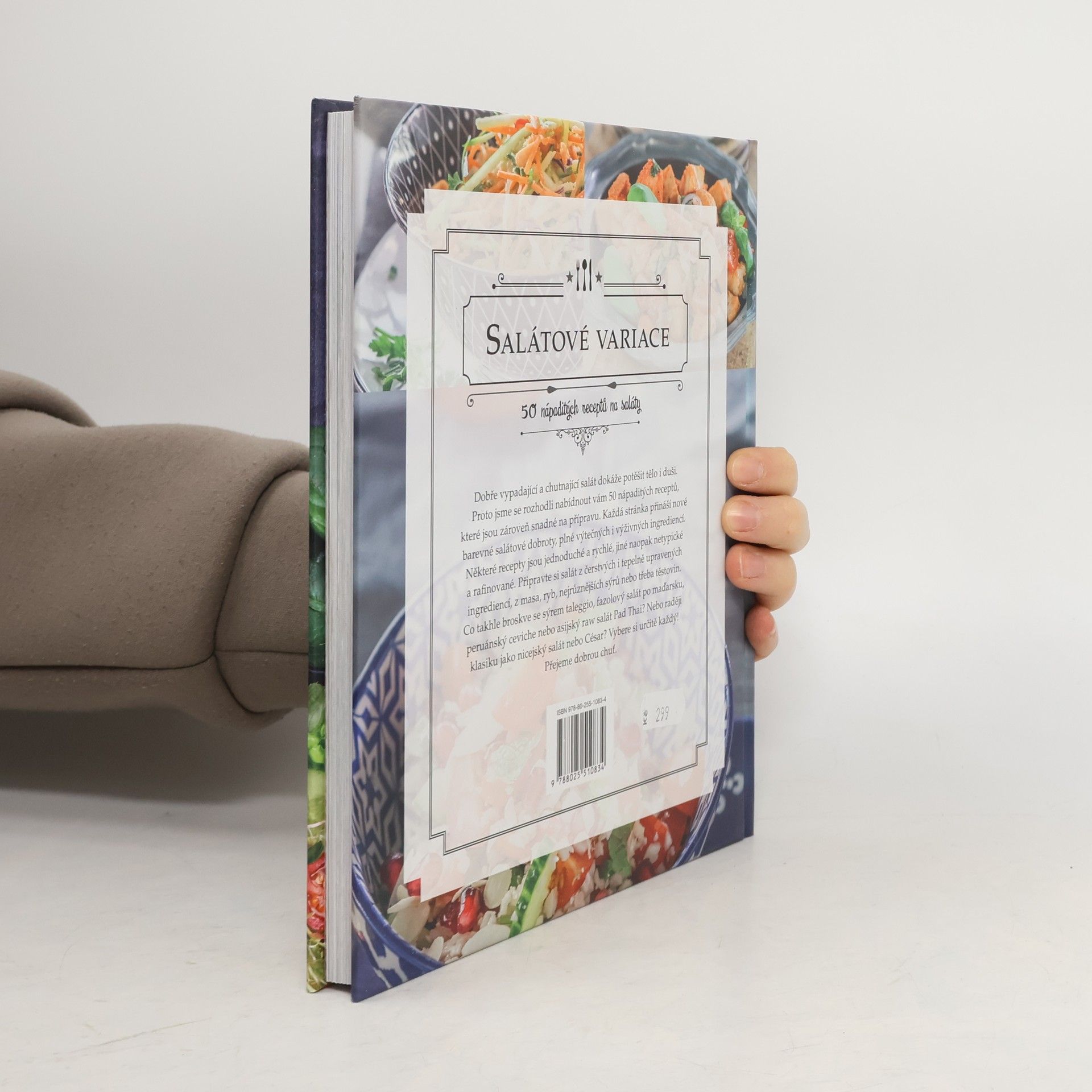 50 nápaditých receptů na saláty. Dobře vypadající a chutnající salát dokáže potěšit tělo i duši. Proto jsme se rozhodli nabídnout vám 50 nápaditých receptů, které jsou zároveň snadné na přípravu. Každá stránka přináší nové barevné salátové dobroty, plné výtečných i výživných ingrediencí. Některé recepty jsou jednoduché a rychlé, jiné naopak netypické a rafinované. Připravte si salát z čerstvých i tepelně upravených ingrediencí, z masa, ryb, nejrůznějších sýrů nebo třeba těstovin. Co takhle broskve se sýrem taleggio, fazolový salát po maďarsku, peruánský ceviche nebo asijský raw salát Pad Thai? Nebo raději klasiku jako nicejský salát nebo César? Vybere si určitě každý! Přejeme dobrou chuť.