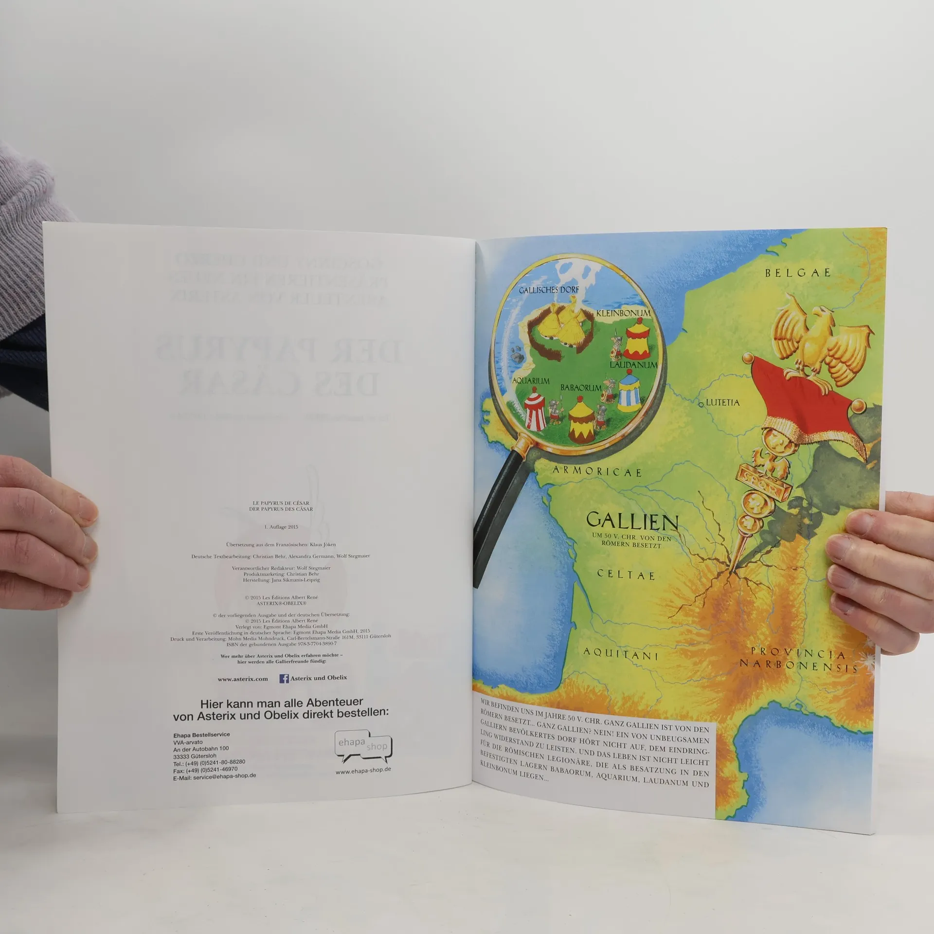Tegneserie. Als Schriftsteller reüssiert der römische Feldherr Cäsar mit seinem späteren Klassiker "De bello Gallico". Auf Drängen seines Beraters Syndicus will der Herrscher das unrühmliche Kapitel über die steten Niederlagen gegen das berühmte gallische Dorf entsorgen lassen. Doch es fällt dem Journalisten Polemix in die Hände, der einen spektakulären Scoop wittert