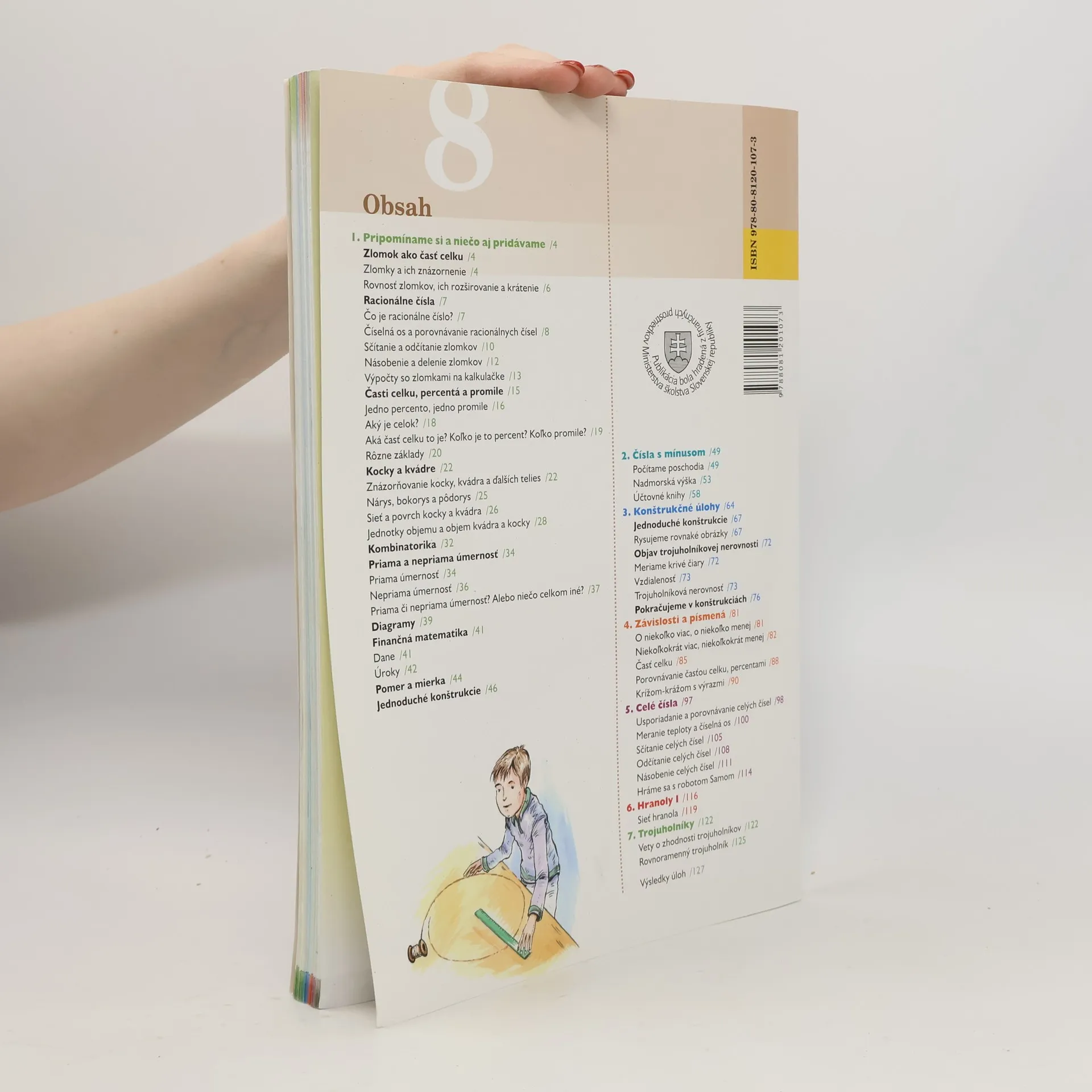 Nová učebnica matematiky od autorov učebníc pre 5. 6. a 7. ročník pokračuje v osvedčenom spôsobe vysvetľovania učiva, ktorý aktívne zapája žiakov do vyučovacieho procesu pri hľadaní rôznych riešení. Didaktické spracovanie učiva, štruktúra textu a motivačné prvky sú podobné ako v učebniciach pre predchádzajúce ročníky.