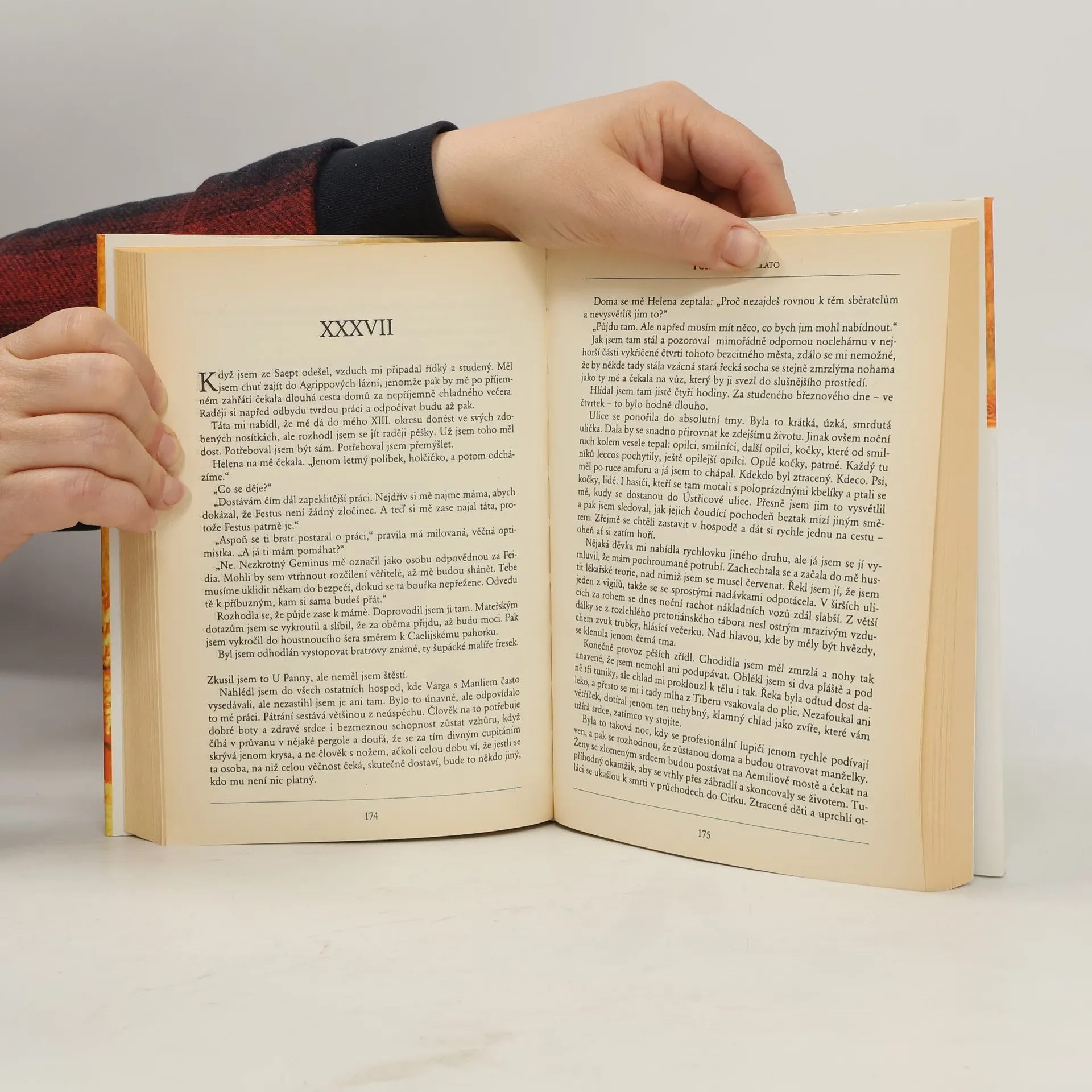 Řím roku 72. Soukromý „detektiv“ Marcus Didius Falco se vrací od legií na římské hranici, kde plnil nebezpečné úkoly pro císaře Vespasiana. Očekává zaslouženou odměnu, aby se mohl oženit se svou milovanou Helenou. Po návratu však zjistí, že jeho byt byl zdemolován a u matky bydlí arogantní bývalý legionář, který vymáhá dluh po jeho bratru Festovi, padlém hrdinovi z Judeje. Pod maskou oblíbeného vojáka se skrývají podvodné praktiky a dluhy, zejména v obchodu s uměleckými poklady z Řecka. Falco musí spolupracovat se svým otcem Geminem, dražebníkem, který rodinu opustil. Situace se zkomplikuje, když je vyděračský voják zavražděn a Falco se stává hlavním podezřelým. Musí se snažit očistit své jméno a najít skutečného viníka. Pokud jste se dosud s Markem Didiem Falconem nesetkali, tato kniha je skvělým začátkem. Ožívá antický Řím s jeho každodenním životem během upevňování moci dynastie Flaviovců. Další díl falconovské série po Ztraceném stříbru, Bronzových stínech, Měděné Venuši a Železné ruce je plný napětí, dobrodružství a humoru. Lindsey Davisová umí psát tak, že nikdy nenudí.