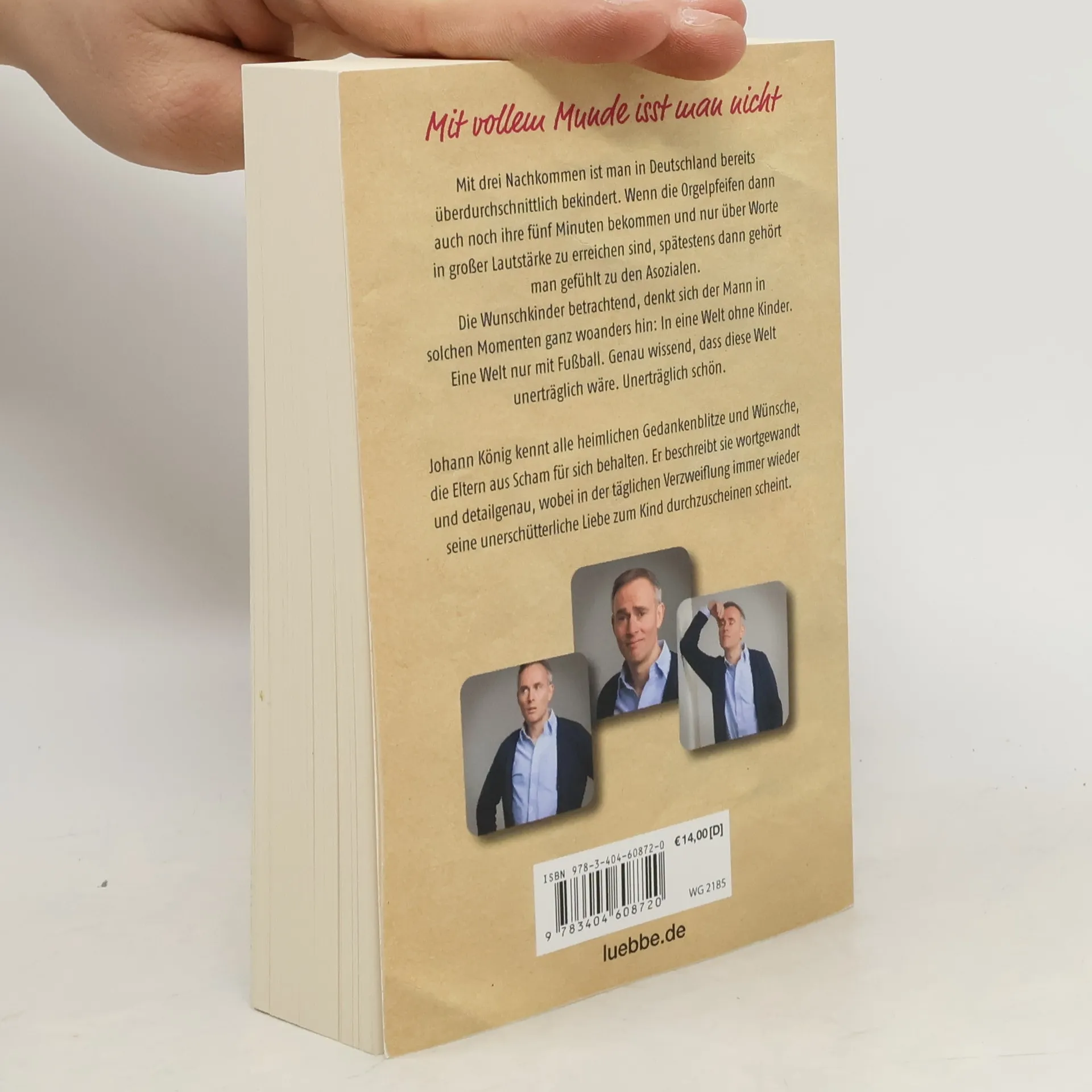 Mit drei Nachkommen ist man in Deutschland bereits überdurchschnittlich bekindert. Wenn die Orgelpfeifen ihre 5 Minuten bekommen und nur über Worte in großer Lautstärke zu erreichen sind, gehört man zu den Asozialen. Die Wunschkinder betrachtend, denkt sich der Mann in solchen Momenten ganz woanders hin: In eine Welt ohne Kinder. Eine Welt nur mit Fußball. Genau wissend, dass diese Welt unerträglich wäre. Unerträglich schön.Johann König kennt alle heimlichen Gedankenblitze und Wünsche, die Eltern aus Scham für sich behalten. Diese beschreibt er wortreich und detailgenau, wobei in der täglichen Verzweiflung immer wieder seine unerschütterliche Liebe zum Kind durchzuscheinen versucht.