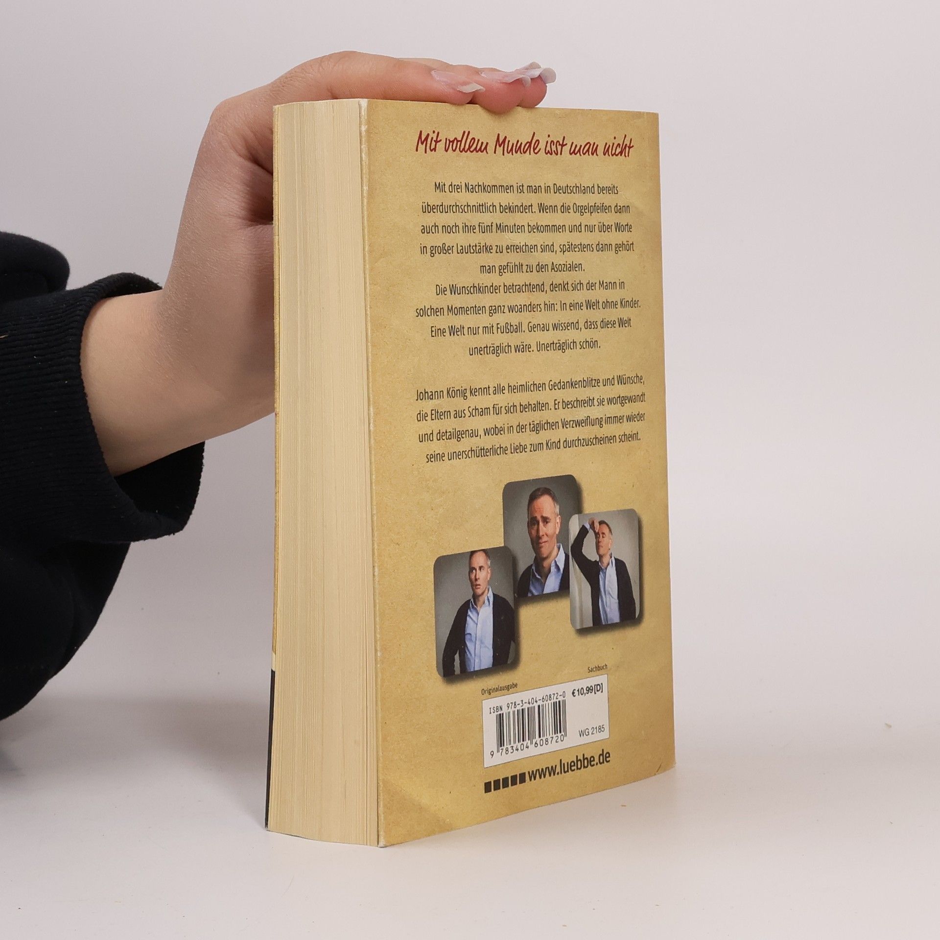 Mit drei Nachkommen ist man in Deutschland bereits überdurchschnittlich bekindert. Wenn die Orgelpfeifen ihre 5 Minuten bekommen und nur über Worte in großer Lautstärke zu erreichen sind, gehört man zu den Asozialen. Die Wunschkinder betrachtend, denkt sich der Mann in solchen Momenten ganz woanders hin: In eine Welt ohne Kinder. Eine Welt nur mit Fußball. Genau wissend, dass diese Welt unerträglich wäre. Unerträglich schön.Johann König kennt alle heimlichen Gedankenblitze und Wünsche, die Eltern aus Scham für sich behalten. Diese beschreibt er wortreich und detailgenau, wobei in der täglichen Verzweiflung immer wieder seine unerschütterliche Liebe zum Kind durchzuscheinen versucht.