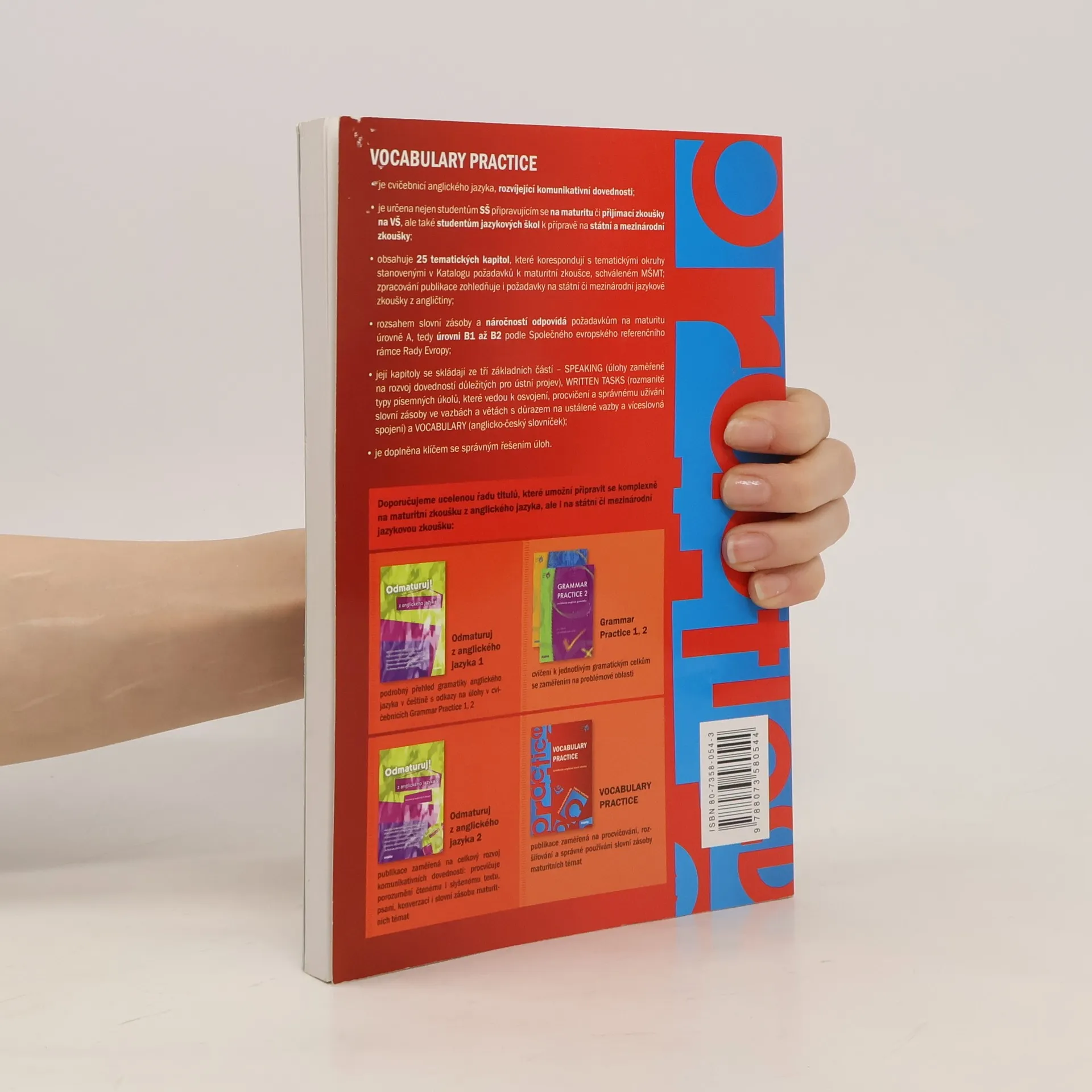 Cvičebnice anglické slovní zásoby je rozdělena podle témat nové maturity z anglického jazyka. Každé téma obsahuje konverzační i písemné úkoly zaměřené na procvičování a rozšiřování potřebné slovní zásoby. Cvičení se zaměřují na používání slovní zásoby v celých slovních spojeních nebo ve větách. Mnohé úkoly se řeší ve více krocích – od utvoření slova, přes jeho správné přiřazení až po jeho užití. Úkoly jsou navíc poutavě ztvárněny a doplněny fotografiemi, obrázky, grafy, křížovkami. Je vhodná zejména pro práci ve skupině v hodinách angličtiny na SŠ a JŠ, ale také pro samostatnou přípravu k maturitě nebo jiné jazykové zkoušce. Je určená pro středně pokročilé (náročnost B1-B2).