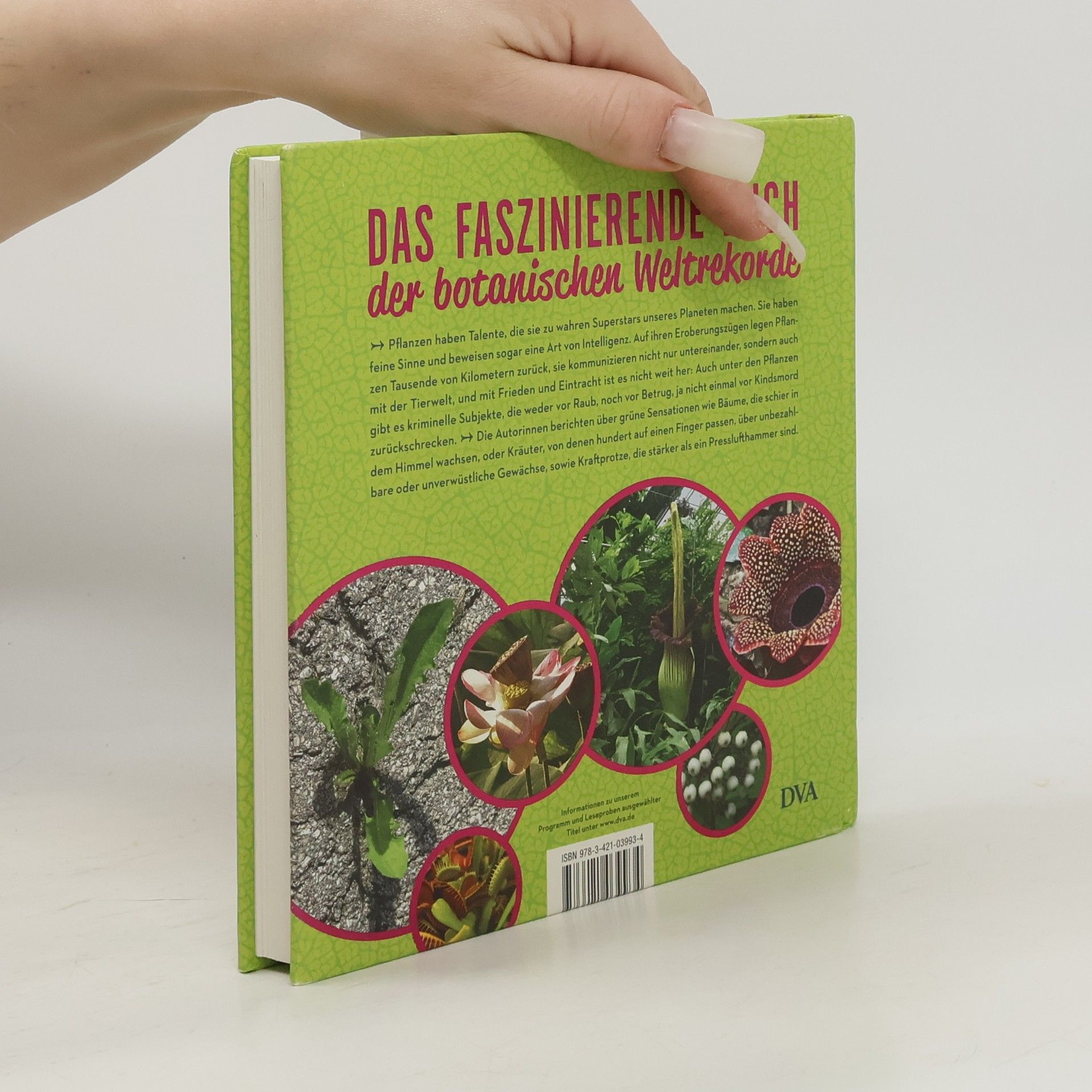 Das faszinierende Buch der botanischen Weltrekorde Pflanzen haben Talente, die sie zu wahren Superstars unseres Planeten machen. Sie haben feine Sinne und beweisen sogar eine Art von Intelligenz. Auf ihren Eroberungszügen legen Pflanzen tausende von Kilometern zurück, sie kommunizieren nicht nur untereinander, sondern auch mit der Tierwelt, und mit Frieden und Eintracht ist es nicht weit her: Auch unter den Pflanzen gibt es kriminelle Subjekte, die weder vor Raub noch vor Betrug, ja nicht einmal vor Kindsmord zurückschrecken. Die Autorinnen berichten über grüne Sensationen wie Bäume, die schier in dem Himmel wachsen, oder Kräuter, von denen hundert auf einen Finger passen, über unbezahlbare wie unverwüstliche Gewächse oder Kraftprotze, die stärker als ein Presslufthammer sind.