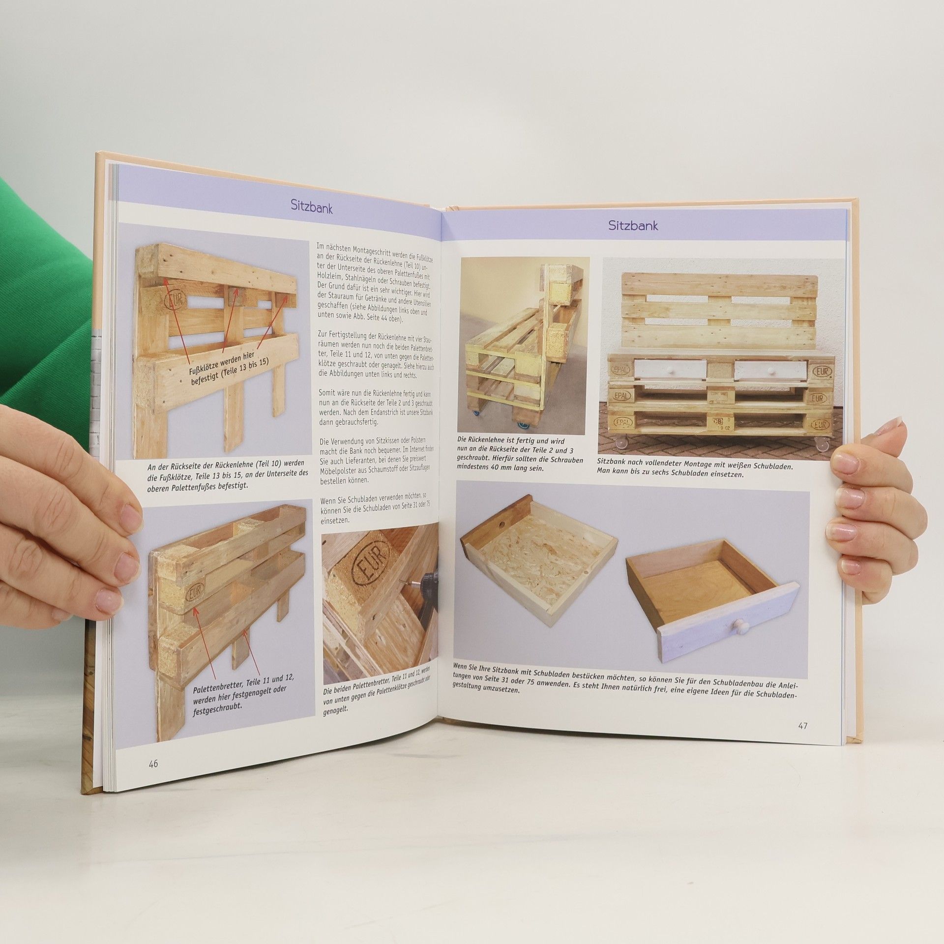 Alles paletti! Möbel, die einzigartig sind? Die können Sie sich für viel Geld vom Schreiner anfertigen lassen. Es geht aber auch ganz anders: Holzpaletten bieten das ideale Ausgangsmaterial, um selbst ein praktisches und schönes Möbelstück zu bauen. Und Sie müssen dazu weder ein Fachmann sein noch einen Maschinenpark zur Verfügung haben: Mit den Anleitungen in diesem Buch gelingt es auch Anfängern, ein Gartenbuffet, eine Sitzbank mit Stauraum, ein Regal und andere Möbel zu bauen. Ausstattung: durchgehend farbig bebildert