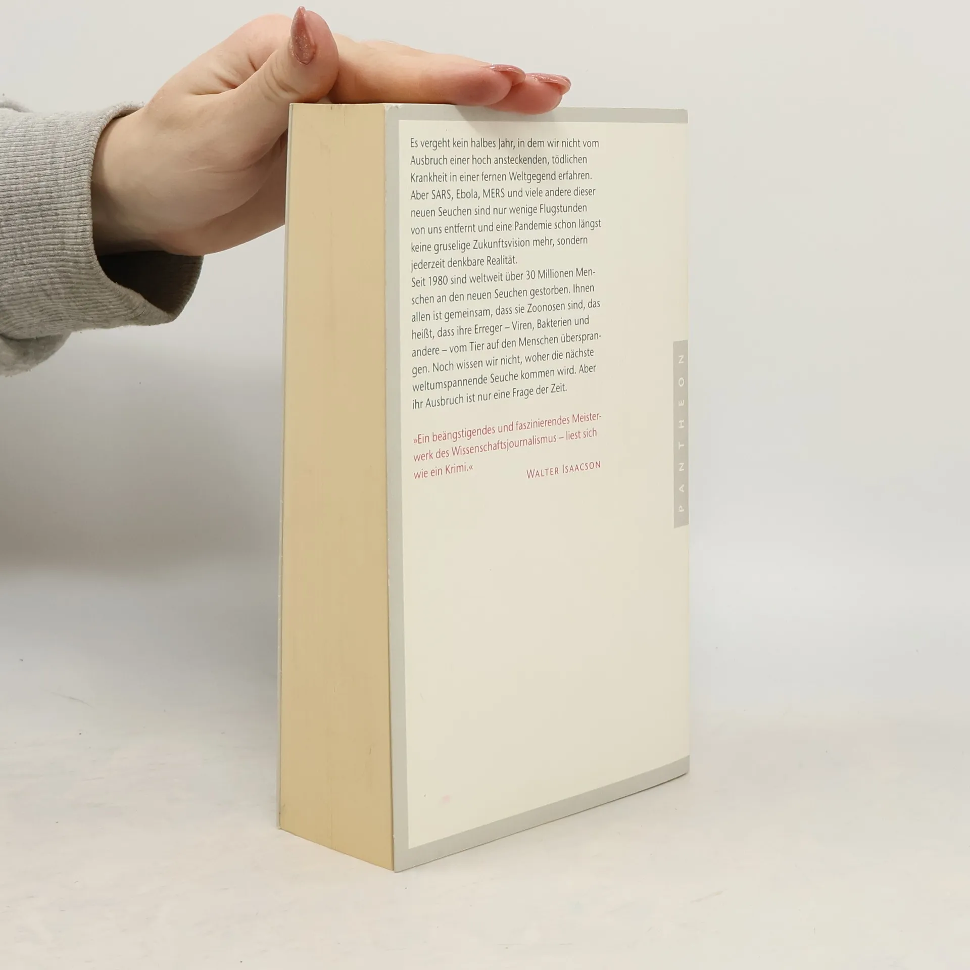 In seinem ebenso spannend erzählten wie beunruhigenden Buch schildert der preisgekrönte Wissenschaftsautor David Quammen wie und an welchen Orten bevorzugt Viren, Bakterien und andere Erreger schwerer Seuchen auf den Menschen übertragen werden. Er begleitete die führenden Forscher bei der Suche nach dem Ursprung der Seuchen zu Gorillas in den Kongo, beobachtet sie bei der Arbeit mit Fledermäusen in China und Affen in Bangladesch und erklärt, warum die Gefahr der Übertragung auf den Menschen gestiegen ist. Noch ist nicht klar, woher die nächste Seuche kommt, aber ihr Ausbruch ist nur eine Frage der Zeit. Ausstattung: mit Abbildungen