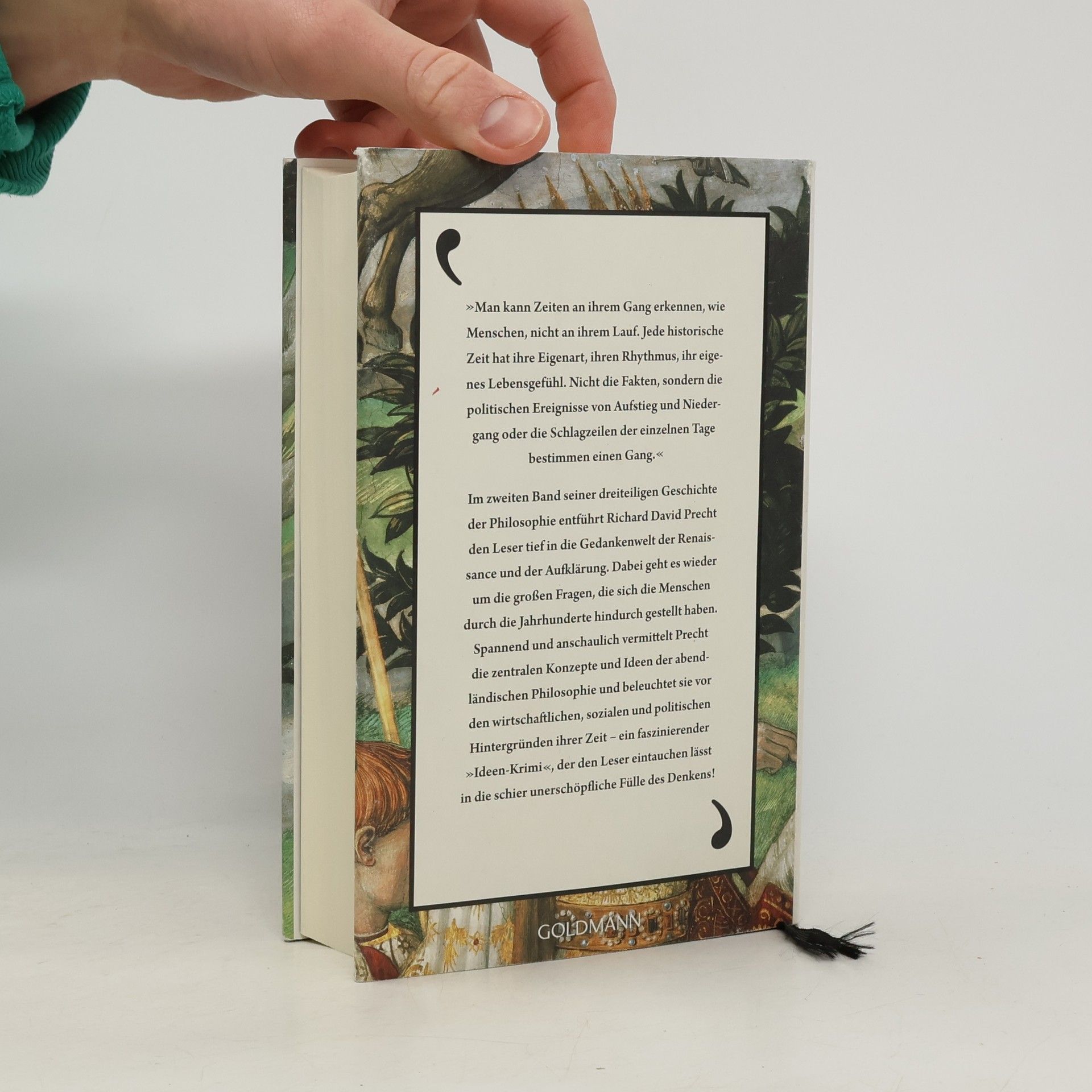 »Man kann Zeiten an ihrem Gang erkennen, wie Menschen, nicht an ihrem Lauf. Jede historische Zeit hat ihre Eigenart, ihren Rhythmus, ihr eigenes Lebensgefühl. Nicht die Fakten, sondern die politischen Ereignisse von Aufstieg und Niedergang oder die Schlagzeilen der einzelnen Tage bestimmen einen Gang.« Im zweiten Band seiner fünfteiligen Geschichte der Philosophie entführt Richard David Precht den Leser tief in die Gedankenwelt der Renaissance und der Aufklärung. Dabei geht es wieder um die großen Fragen, die sich die Menschen durch die Jahrhunderte hindurch gestellt haben. Spannend und anschaulich vermittelt Precht die zentralen Konzepte und Ideen der abendländischen Philosophie und beleuchtet sie vor den wirtschaftlichen, sozialen und politischen Hintergründen ihrer Zeit – ein faszinierender »Ideen-Krimi«, der den Leser eintauchen lässt in die schier unerschöpfliche Fülle des Denkens!