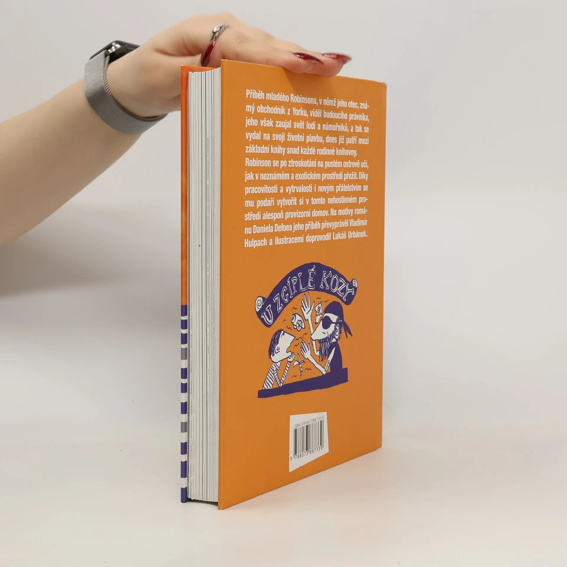 Příběh mladého Robinsona, v němž jeho otec, známý obchodník z Yorku, viděl budoucího právníka, jeho všakzaujal svět lodí a námořníků, a tak se vydal na svoji životní plavbu, dnes již patří mezi základní knihy snad každérodinné knihovny. Robinson se po ztroskotání na pustém ostrově učí, jak v neznámém a exotickém prostředí přežít.Na motivy románu Daniela Defoea přinášíme Robinsona Crusoea v poutavém převyprávění Vladimíra Hulpacha.