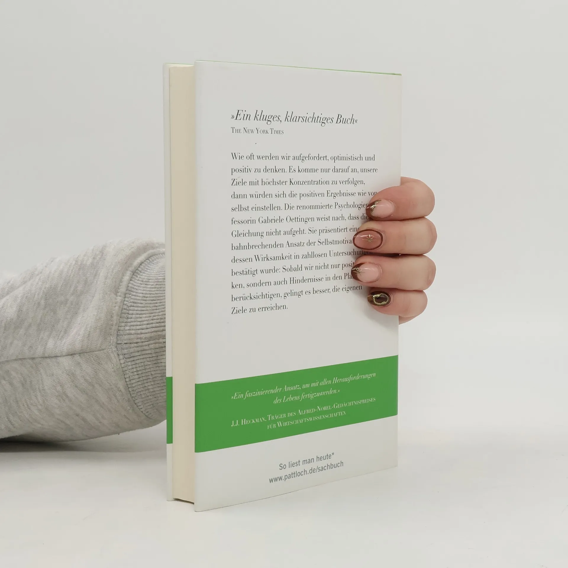Wie oft werden wir im Alltag aufgefordert, optimistisch zu sein und positiv zu denken. Es komme nur darauf an, unsere Ziele mit höchster Konzentration anzugehen, dann würden sich die Ergebnisse wie von selbst einstellen. Die Psychologin Gabriele Oettingen weist nach, dass diese Gleichung nicht aufgeht. Ihr Konzept präsentiert einen überraschend neuen Ansatz der Selbstmotivation, dessen Wirksamkeit in zahllosen Untersuchungen bestätigt wurde: Sobald die Menschen nicht nur positiv denken, sondern auch Hindernisse in ihren Planungen berücksichtigen, gelingt es ihnen besser, ihre individuellen Ziele zu erreichen.