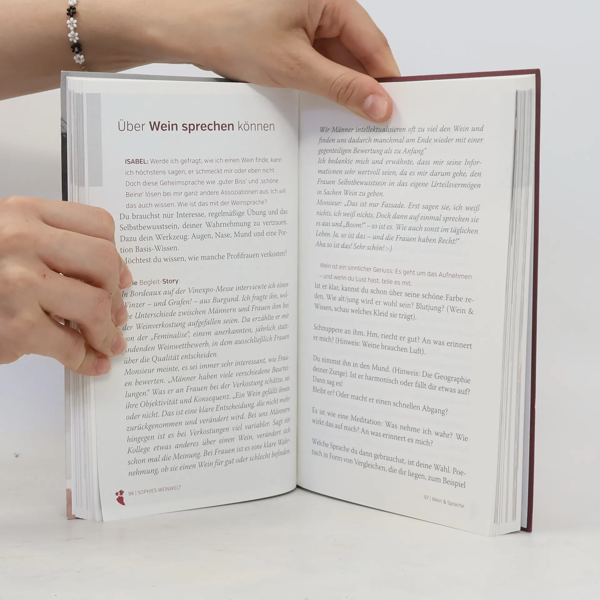 Ein Weinberatungsbuch für Frauen - von einer Expertin! Sophie Houdayer machte sich schon in jungen Jahren, angeregt durch den Weinhandel ihres Vaters, auf die Spurensuche nach der sprichwörtlichen Wahrheit im Wein, indem sie eine Ausbildung am „Lycée Agricole Bordeaux-Blanquefort“ genoss. Dieses Buch vermittelt Frauen generationsübergreifend Selbstvertrauen durch ein besseres Verständnis und Wissen zu den wichtigsten Themen der Weinwelt. Es will aber – anders als die übliche Weinliteratur – nicht nur beraten sondern auch unterhalten. In seiner persönlich unprätentiösen, entspannten und amüsanten Ratgeber-Form ermöglicht es jeder Frau, sich dort abholen zu lassen, wo sie sich bezüglich ihrer Beziehung zum Wein befindet. Es kann Interesse wecken, Wissen festigen, Liebe vertiefen.