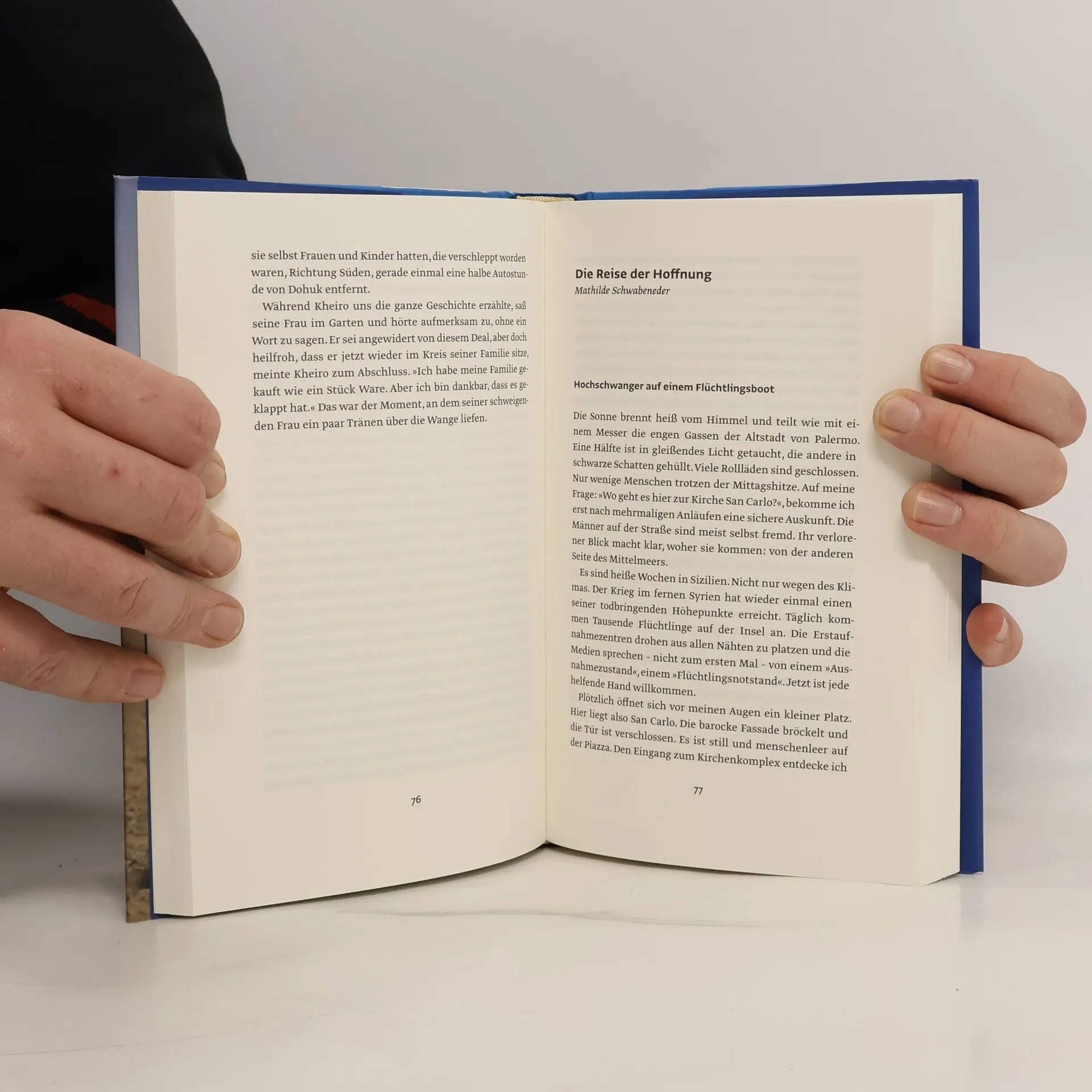 Sie fliehen vor Krieg und Terror aus Syrien und dem Irak und vor der Armut in Afrika. Viele Millionen sind es. Allein in der libanesischen Beka-ebene leben über 200.000 Menschen in notdürftig mit Planen abgedeckten Verschlägen. „Ich habe mein Baby bei Schnee und Eis zur Welt gebracht und in der Kälte ist es dann gestorben“, erzählt etwa Fatma. Manche wagen den lebensgefährlichen Weg durch die Wüste und über das Meer. „Das schlimmste“, sagt Dembo aus Gambia, „war die Fahrt durch die Sahara.“ Eine Flasche Wasser musste für eine Woche reichen. Hinzu kam die peinigende Angst, auf dem vollgepferchten Pick-up zu sterben. Für Schlepper sind Flüchtlinge ein gutes Geschäft. Sie bringen „mehr Geld als Drogen“, brüstet sich ein Drahtzieher der römischen „Maia-Capitale“. Nur wenige schaffen es in sichere Staaten – wie die menschenwürdige Aufnahme von Flüchtlingen gelingen kann, zeigt das letzte Kapitel des Buches.