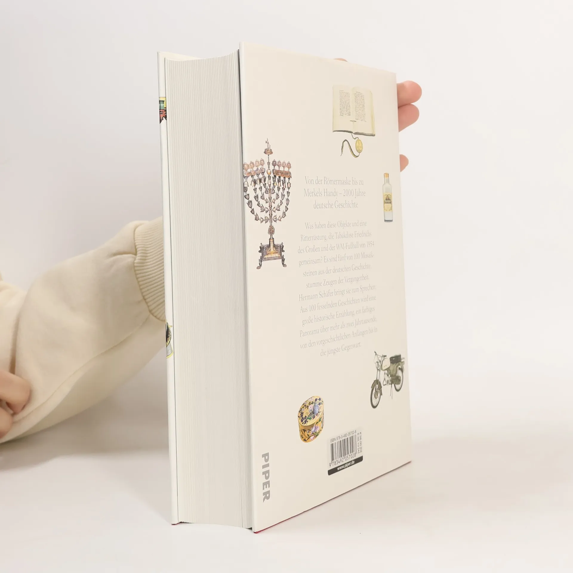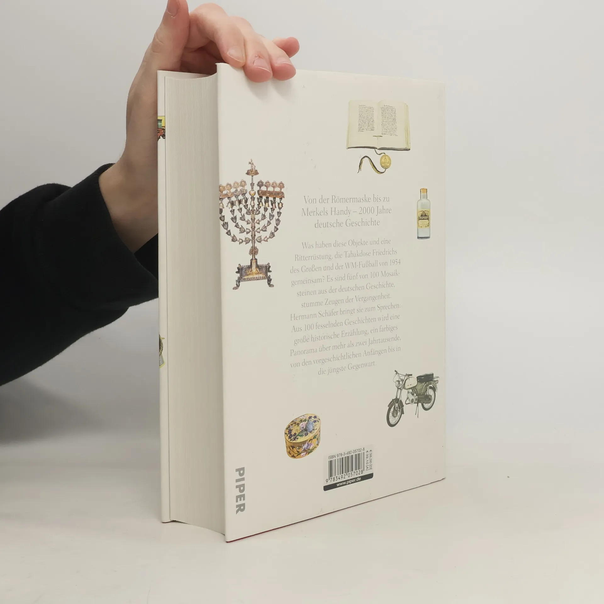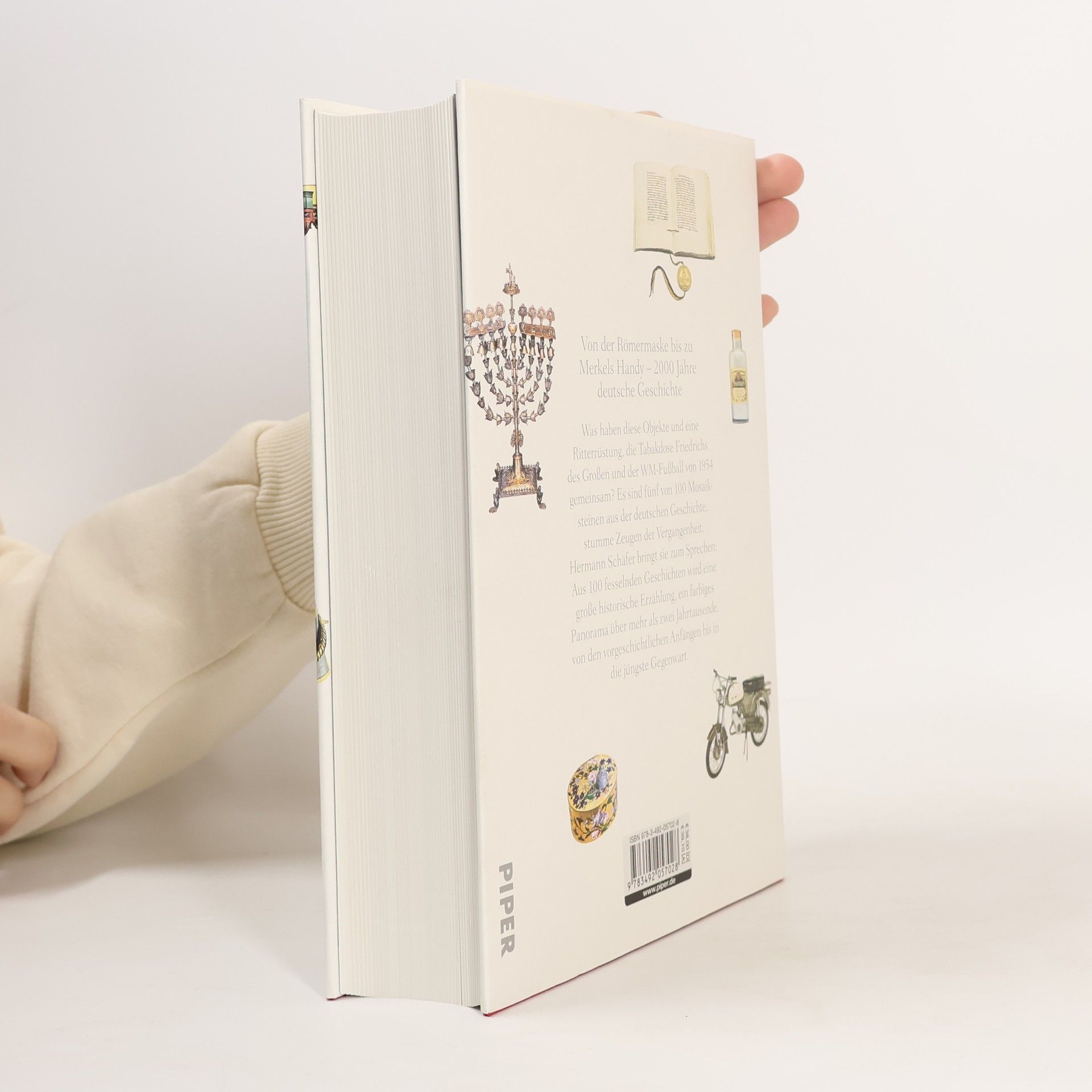 Was haben eine Ritterrüstung, die Tabakdose Friedrichs des Großen und der WM-Fußball von 1954 gemeinsam? Es sind drei von 100 Mosaiksteinen der deutschen Geschichte, stumme Zeugen der Vergangenheit. Hermann Schäfer, einer der führenden Vertreter der deutschen Museumsszene, fügt sie in diesem opulent ausgestatteten Band zusammen. Anschaulich und gut verständlich bringt er die Objekte zum Sprechen und macht zugleich auch ihre erstaunliche Umdeutung im Dienst politischer Interessen und gesellschaftlicher Umbrüche deutlich. Für den interessierten Laien leicht zugänglich, eine Schatzkiste für immer neue Entdeckungen: Aus 100 fesselnden Geschichten wird eine große historische Erzählung. Ein farbiges Panorama der vergangenen über zwei Jahrtausende, von den vorgeschichtlichen Anfängen bis in die jüngste Gegenwart.