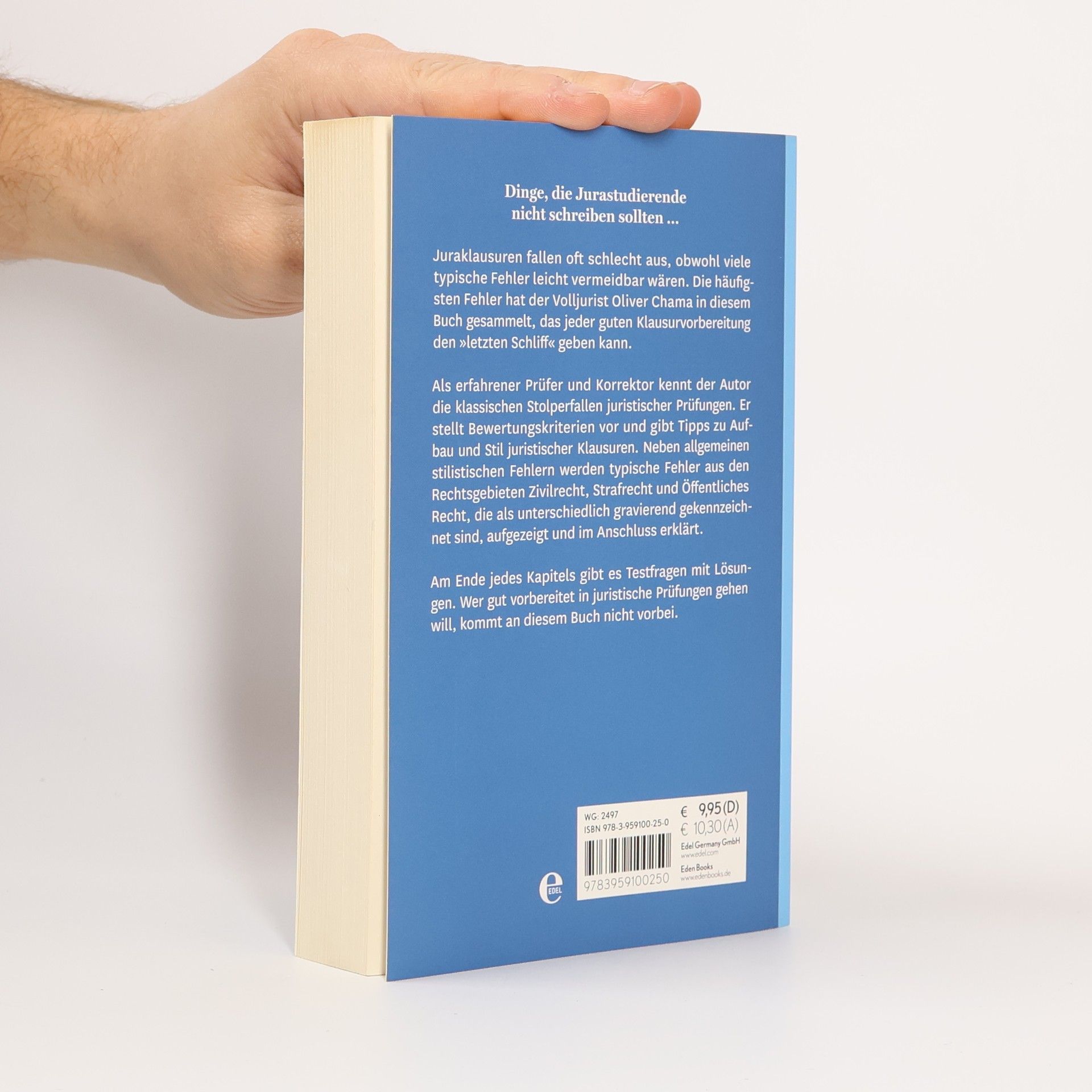 Juraklausuren fallen oft schlecht aus, obwohl viele typische Fehler leicht vermeidbar wären. Die häufigsten Fehler hat der Volljurist Oliver Chama in diesem Buch gesammelt, das jeder guten Klausurvorbereitung den »letzten Schliff« geben kann. Als erfahrener Prüfer und Korrektor kennt der Autor die klassischen Stolperfallen juristischer Prüfungen. Er stellt Bewertungskriterien vor und gibt Tipps zu Aufbau und Stil juristischer Klausuren. Neben allgemeinen stilistischen Fehlern werden typische Fehler aus den Rechtsgebieten Zivilrecht, Strafrecht und Öffentliches Recht, die als unterschiedlich gravierend gekennzeichnet sind, aufgezeigt und im Anschluss erklärt. Am Ende jedes Kapitels gibt es Testfragen mit Lösungen. Wer gut vorbereitet in juristische Prüfungen gehen will, kommt an diesem Buch nicht vorbei.