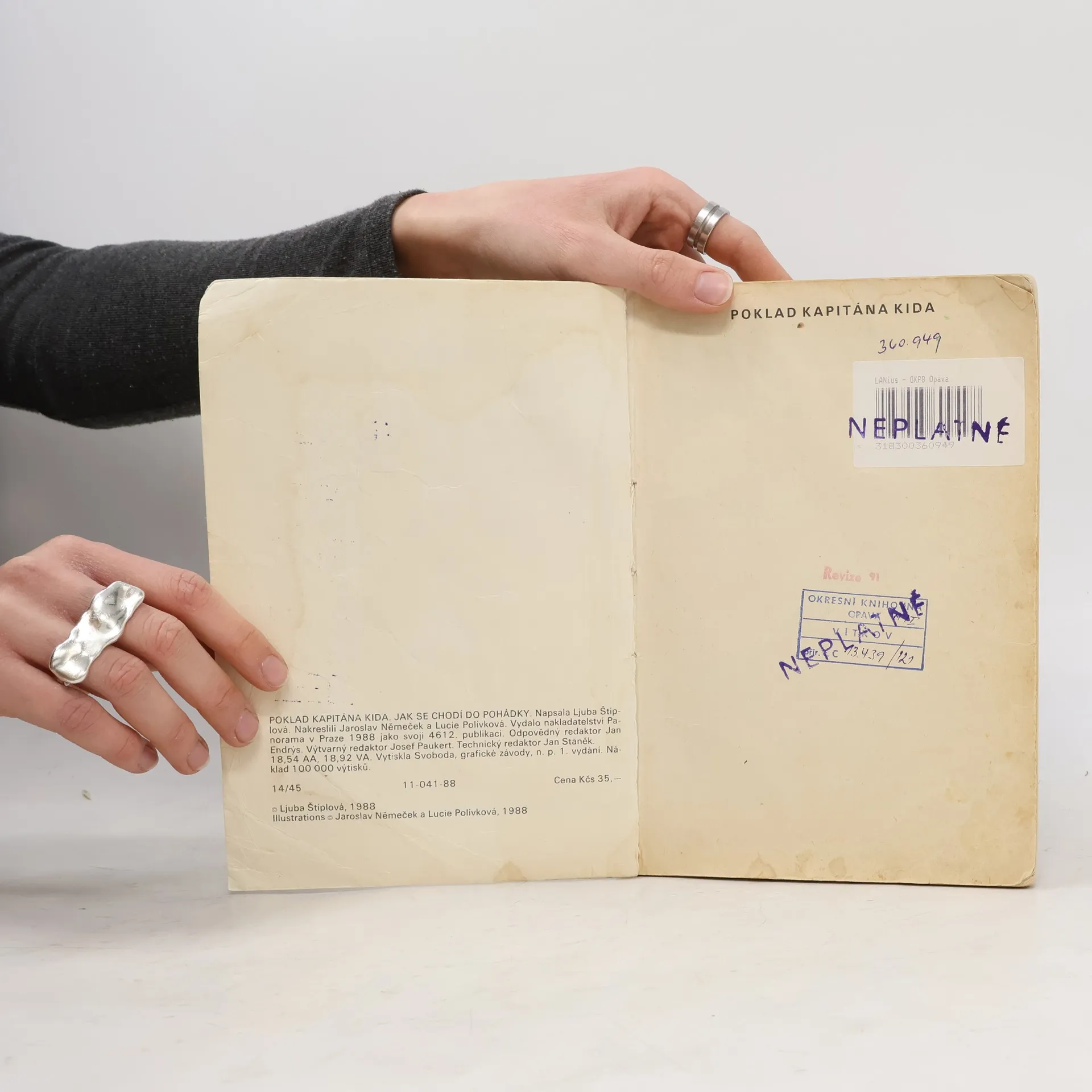 Dva samostatné příběhy Čtyřlístku. Příběh Jak se chodí do pohádky tištěn zvratmo se samostatnou obálkou. Poklad kapitána Kida (92 stran) Jak se chodí do pohádky (68 stran)