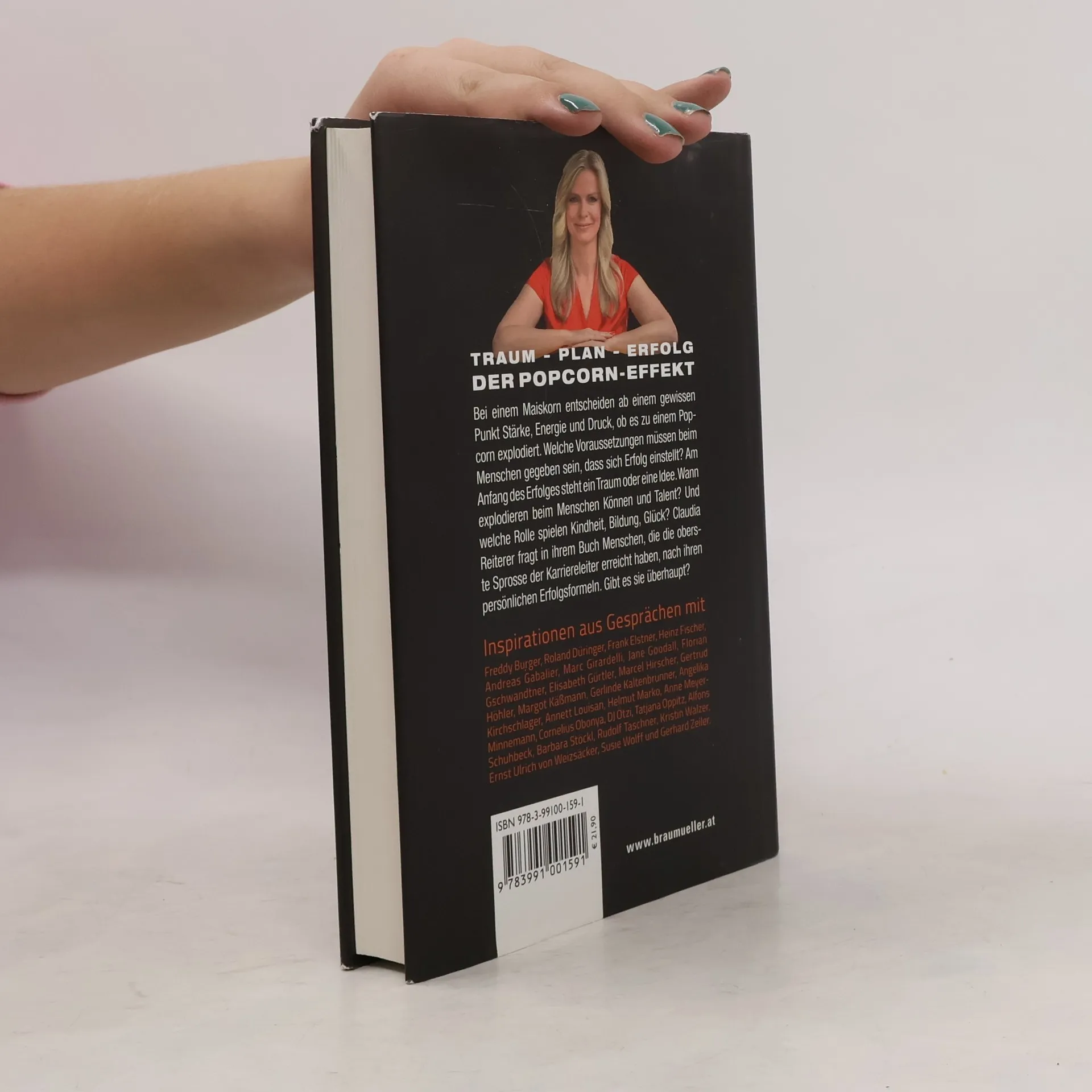 Der Popcorn-Effekt: Bei einem Maiskorn entscheiden ab einem gewissen Punkt Stärke, Energie und Druck, ob es zu einem Popcorn explodiert. Welche Voraussetzungen müssen beim Menschen gegeben sein, dass sich Erfolg einstellt? Am Anfang des Erfolges steht ein Traum oder eine Idee. Wann explodieren beim Menschen Können und Talent? Und welche Rolle spielen Kindheit, Bildung, Glück? Claudia Reiterer fragt in Ihrem Buch Menschen, die die oberste Sprosse der Karriereleiter erreicht haben, nach ihren persönlichen Erfolgsformeln. Gibt es sie überhaupt? Persönlichkeiten aus Theater, Film, Musik, Sport, Wissenschaft, Wirtschaft und Politik geben Einblick in ihren Erfolgsweg. Marcel Hirscher lernte am meisten, als er verletzt auf der Couch Skirennen am Bildschirm sah. Gerlinde Kaltenbrunner dreht mithilfe des „Adlerblicks“ kurz vor dem Ziel eines 8000er-Gipfels um. Starkoch Alfons Schuhbeck startet, ohne ein Wort Französisch zu können, seine Karriere in Paris. Was an der Wirtschaftsspitze zählt, wissen Topmanager Gerhard Zeiler, Elisabeth Gürtler, Tatjana Oppitz, Runtastic-Gründer Florian Gschwandtner. Und wann braucht man eine Pause vom Erfolg? Opernstar Angelika Kirchschlager und Udo Jürgens Manager Freddy Burger regen zum Nachdenken an.