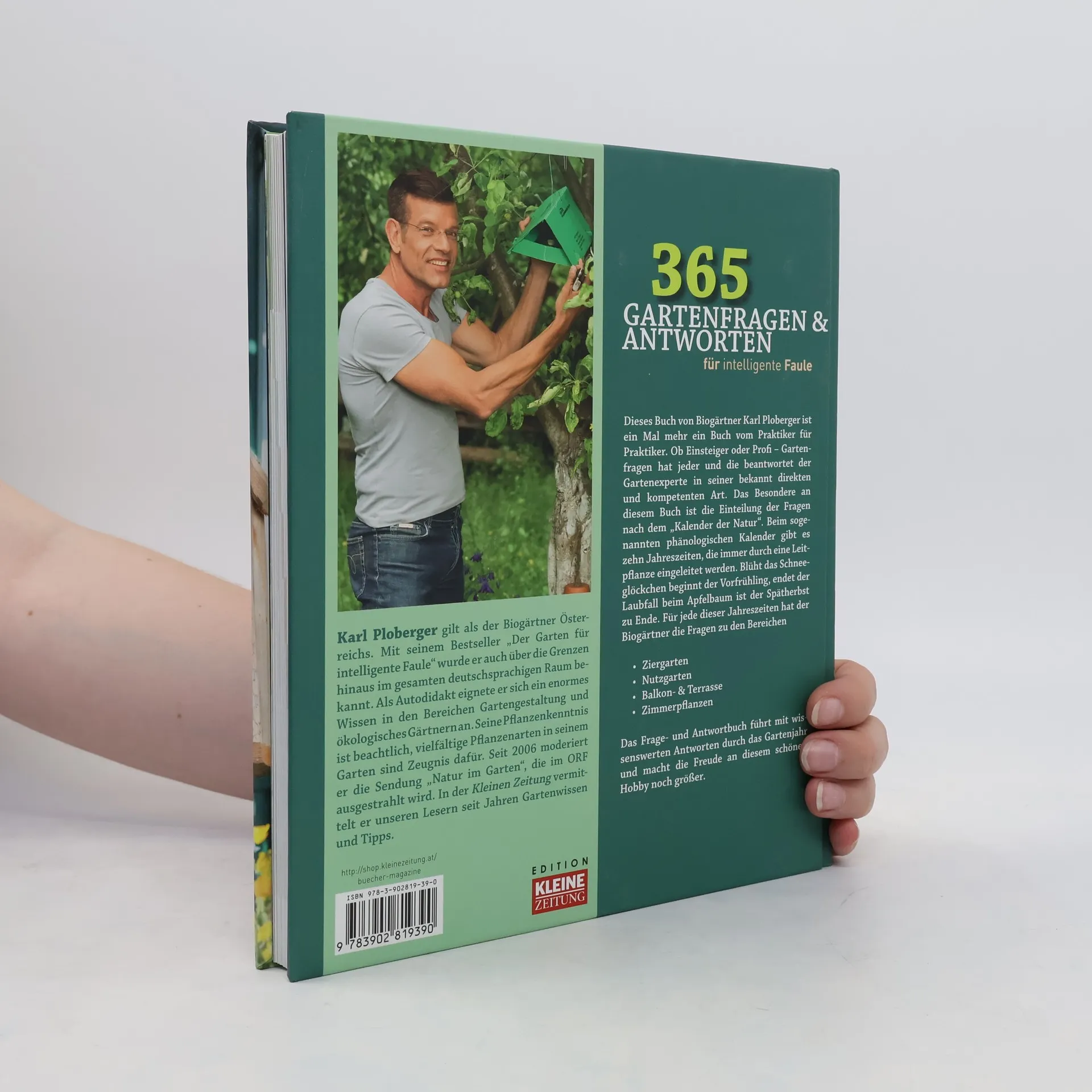 Dieses Buch von Biogärtner Karl Ploberger ist einmal mehr ein Buch vom Praktiker für Praktiker. Ob Einsteiger oder Pro_ – Gartenfragen hat jeder und die beantwortet der Garten experte in seiner bekannt direkten und kompetenten Art. Das Besondere an diesem Buch ist die Einteilung der Fragen nach dem „Kalender der Natur“. Beim sogenannten phänologischen Kalender gibt es zehn Jahreszeiten, die immer durch eine Leitpflanze eingeleitet werden. Blüht das Schneeglöckchen beginnt der Vorfrühling, endet der Laubfall beim Apfelbaum ist der Spätherbst zu Ende. Für jede dieser Jahreszeiten hat der Biogärtner die Fragen zu den Bereichen: Ziergarten; Nutzgarten; Balkon- & Terrasse; Zimmerpflanzen. Das Frage- und Antwortbuch führt mit wissenswerten Antworten durch das Gartenjahr und macht die Freude an diesem schönen Hobby noch größer.