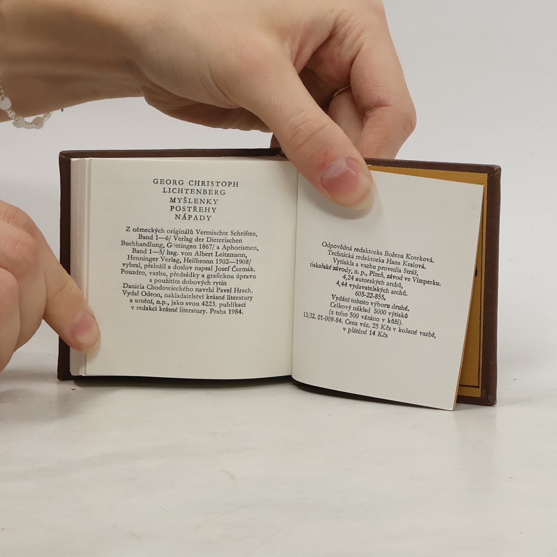 Aforistické postřehy významného německého učence 18. století. Z 5000 výtisků 500 vázáno v kůži.