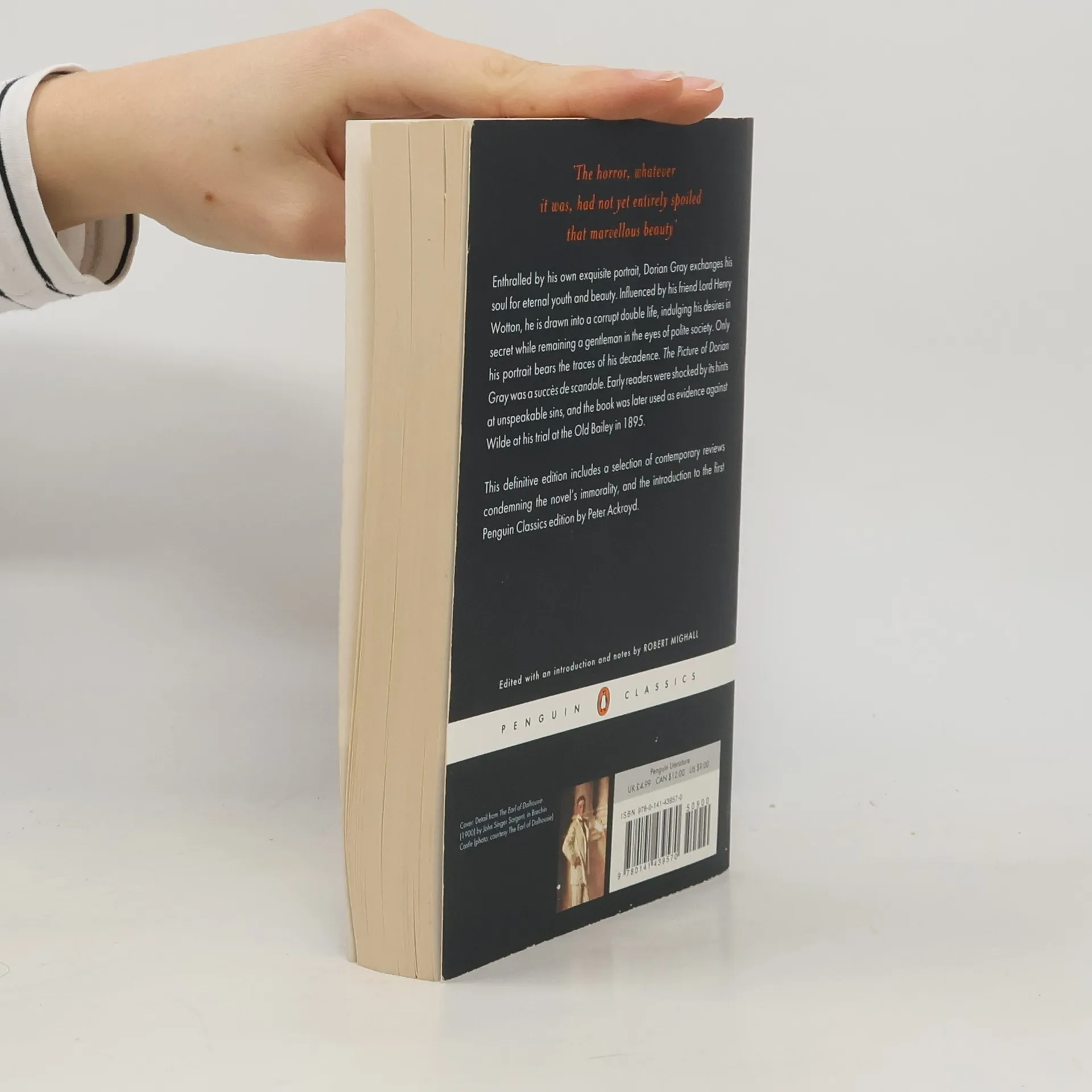 An astounding novel of decadence, debauchery, and secrecy from one of Ireland's greatest writers. Nominated as one of America’s best-loved novels by PBS’s The Great American Read Enthralled by his own exquisite portrait, Dorian Gray makes a Faustian bargain to sell his soul in exchange for eternal youth and beauty. Under the influence of Lord Henry Wotton, he is drawn into a corrupt double life, where he is able to indulge his desires while remaining a gentleman in the eyes of polite society. Only Dorian's picture bears the traces of his decadence. A knowing account of a secret life and an analysis of the darker side of late Victorian society. The Picture of Dorian Gray offers a disturbing portrait of an individual coming face to face with the reality of his soul. Shocking in its suggestion of unspeakable sin, this novel was later used as evidence against Wilde when he was tried for indecency in 1895. For more than seventy years, Penguin has been the leading publisher of classic literature in the English-speaking world. With more than 1,700 titles, Penguin Classics represents a global bookshelf of the best works throughout history and across genres and disciplines. Readers trust the series to provide authoritative texts enhanced by introductions and notes by distinguished scholars and contemporary authors, as well as up-to-date translations by award-winning translators.