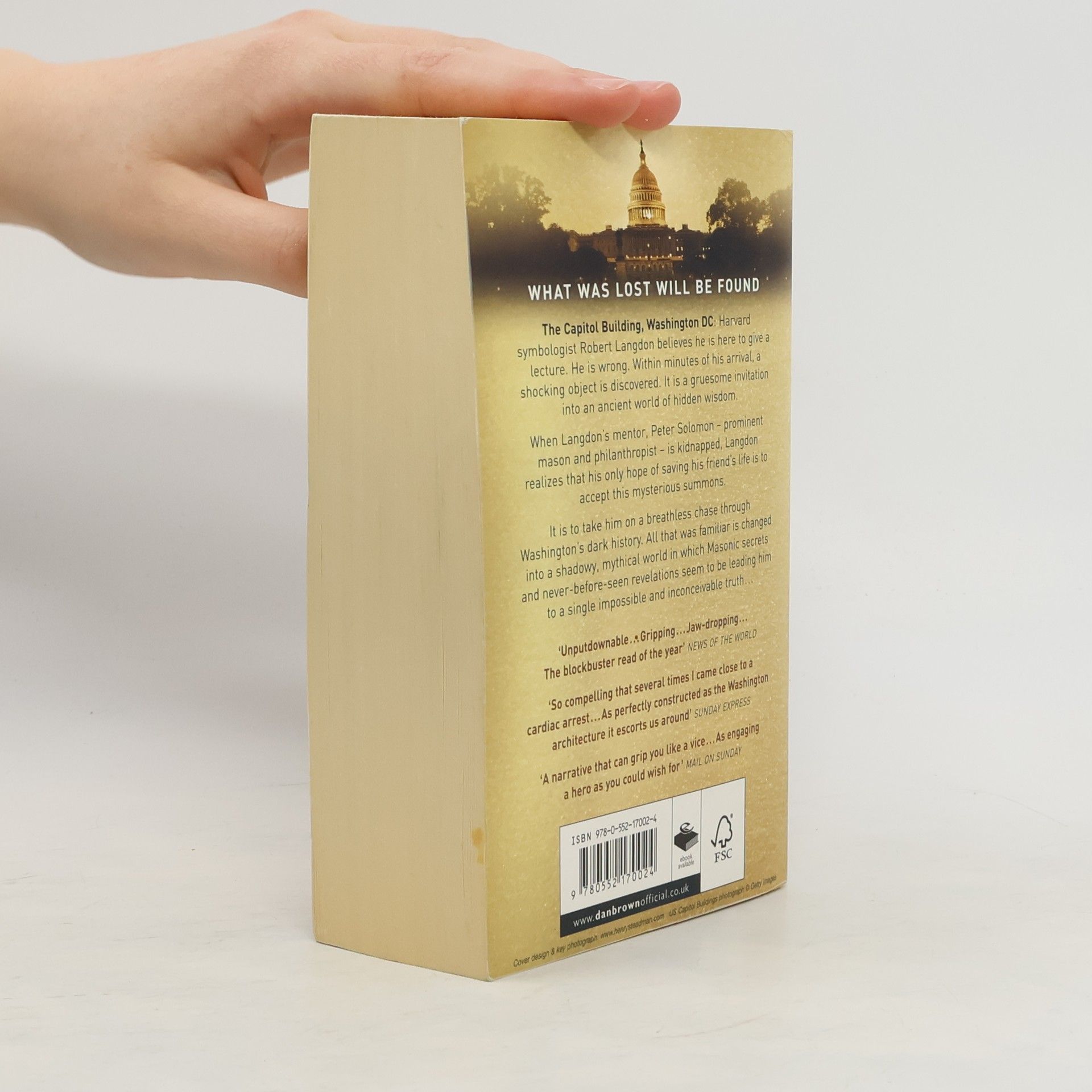The Capitol Building, Washington DC: Harvard symbologist Robert Langdon believes he is here to give a lecture. He is wrong. Within minutes of his arrival, a shocking object is discovered. It is a gruesome invitation into an ancient world of hidden wisdom. When Langdon's mentor, Peter Solomon - prominent mason and philanthropist – is kidnapped, Langdon realizes that his only hope of saving his friend's life is to accept this mysterious summons. It is to take him on a breathless chase through Washington's dark history. All that was familiar is changed into a shadowy, mythical world in which Masonic secrets and never before- seen revelations seem to be leading him to a single impossible and inconceivable truth...
