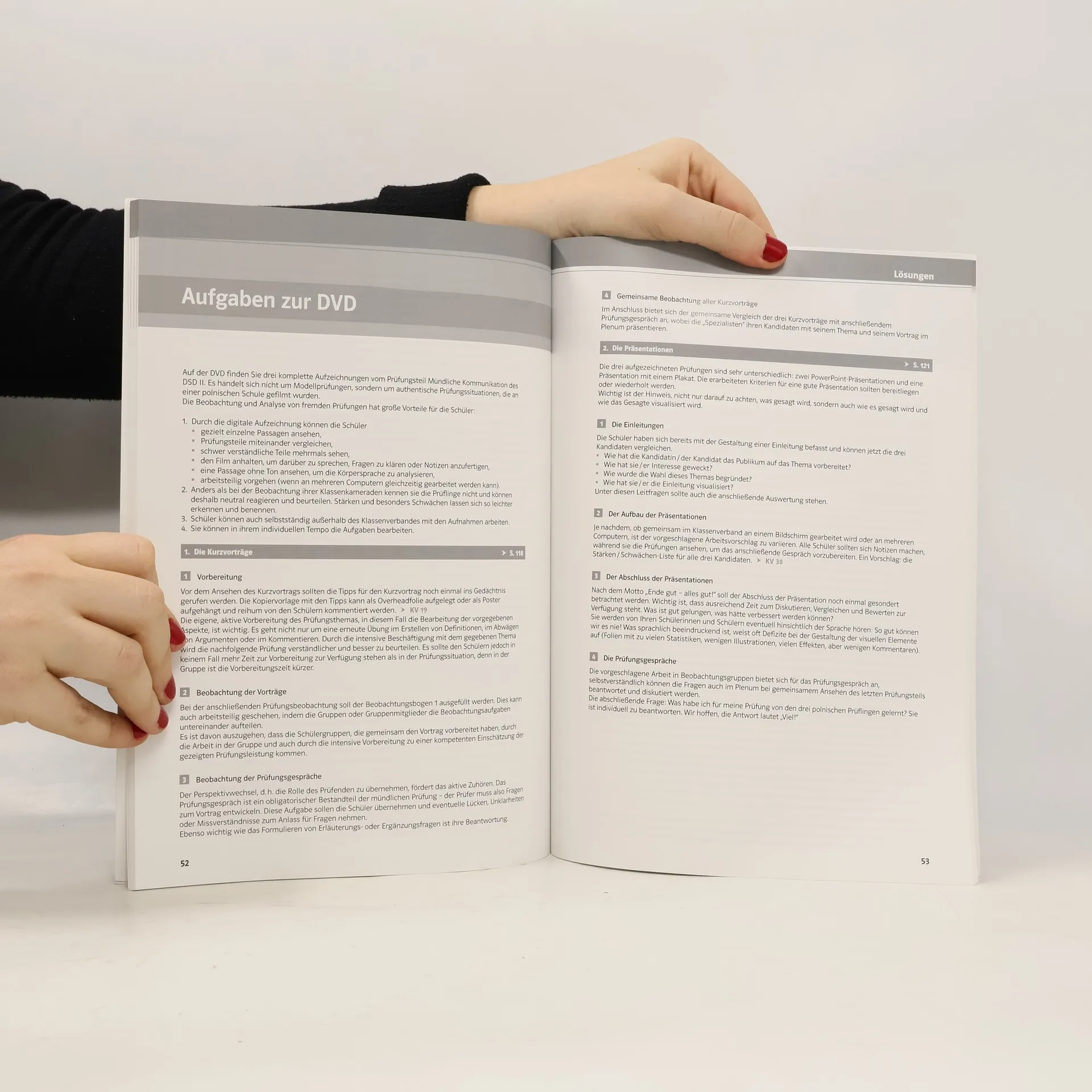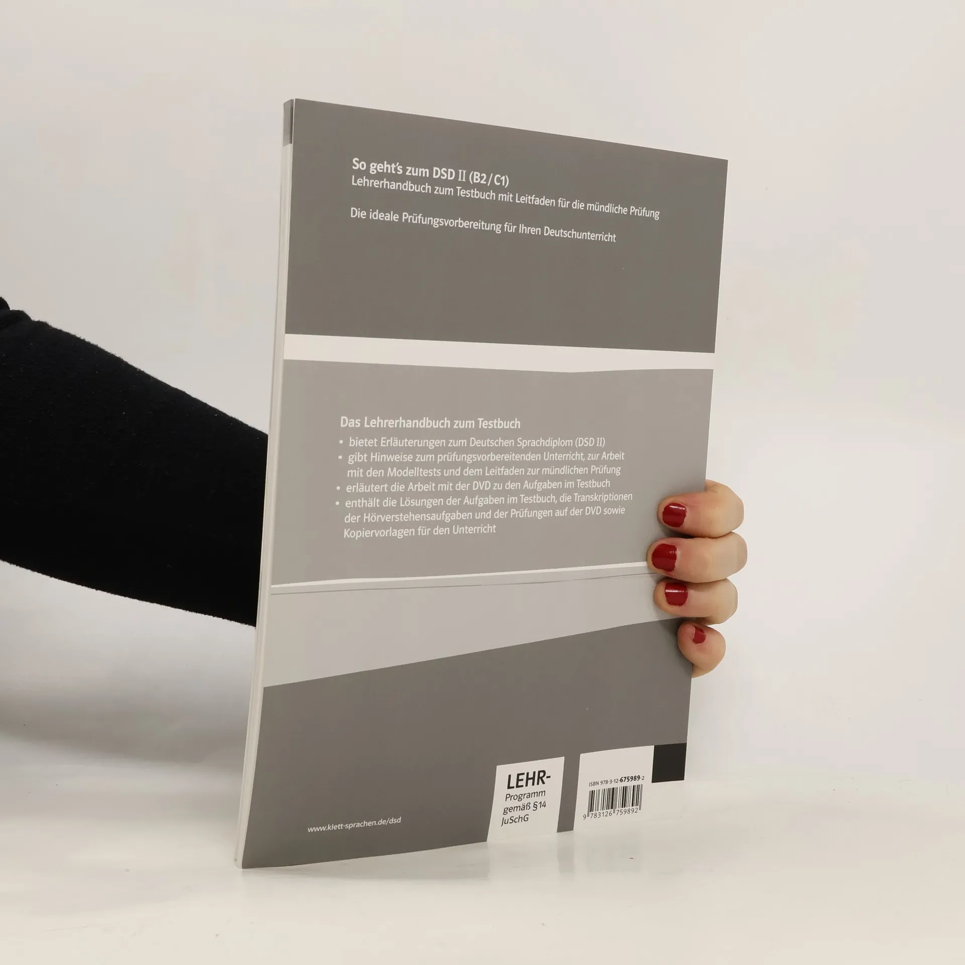 Das Lehrerhandbuch zum Testbuch• bietet Erläuterungen zum Deutschen Sprachdiplom (DSD II)• gibt Hinweise zum prüfungsvorbereitenden Unterricht, zur Arbeit mit den Modelltests und dem Leitfaden zur mündlichen Prüfung• erläutert die Arbeit mit der DVD zu den Aufgaben im Testbuch• enthält die Löseûngen der Aufgaben im Testbuch, die Transkriptionen der Hörverstehensaufgaben und der Prüfungen auf der DVD sowie Kopiervolagen für den Unterricht