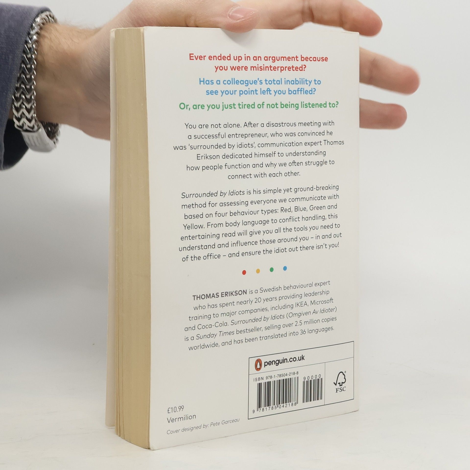 You are not alone. After a disastrous encounter with a successful entrepreneur convinced he was surrounded by idiots, communication expert and bestselling author Thomas Erikson committed to understanding human behavior and the challenges of connecting with different personality types. Originally published in Swedish in 2014, this work has become an international sensation, selling over 1.5 million copies globally. It presents a groundbreaking method for assessing personalities based on four types—Red, Blue, Green, and Yellow—and offers insights on adjusting communication styles accordingly. Erikson aids in self-understanding, enhancing communication and social skills, managing conflicts, and improving relationships with colleagues and superiors. He provides practical tips on body language, written communication, and knowing when to engage or withdraw in conversations. Filled with enlightening moments, this guide empowers you to understand and influence those around you, even those you find perplexing. With a bit of luck, you may also realize that the "idiot" in the room isn't you!