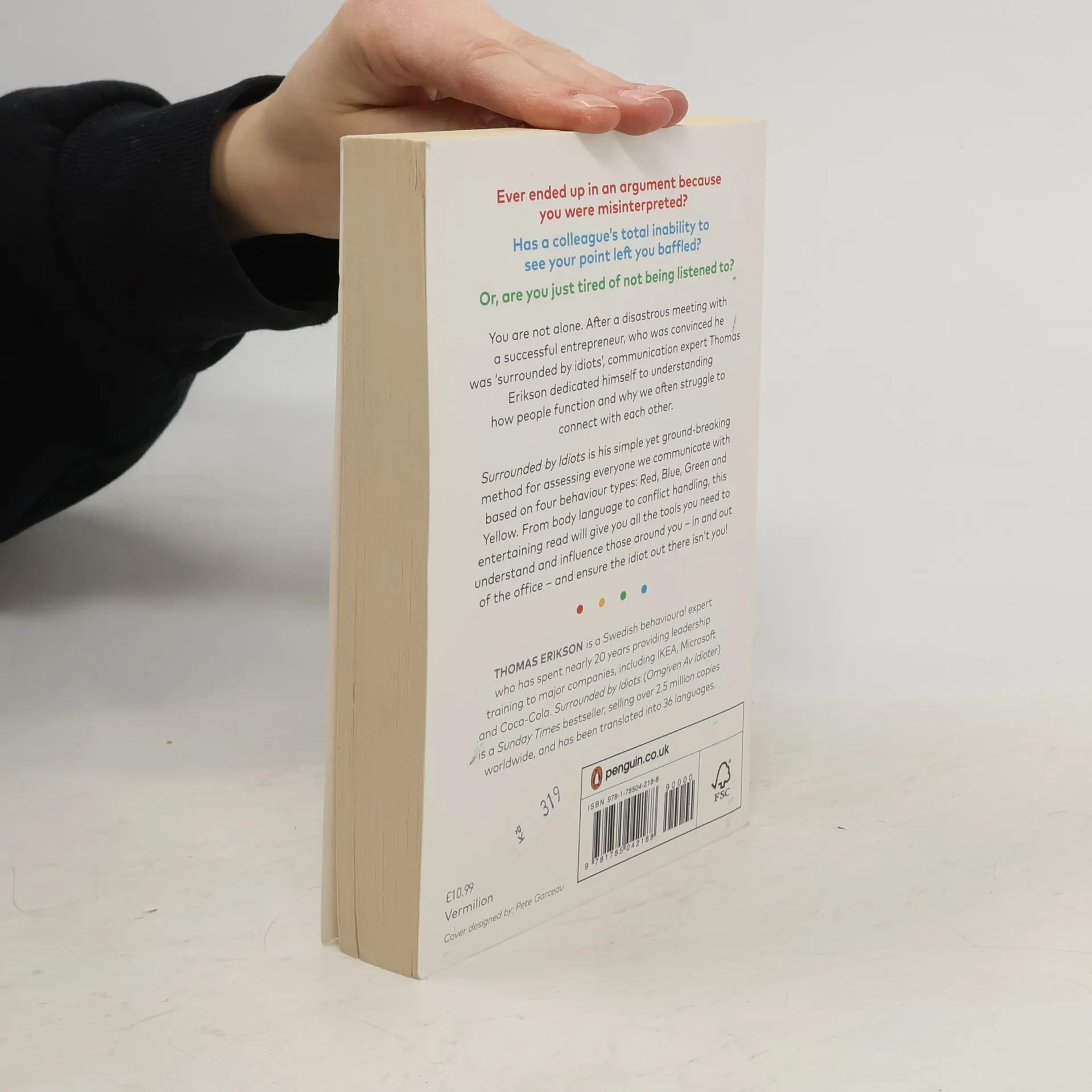 You are not alone. After a disastrous encounter with a successful entrepreneur convinced he was surrounded by idiots, communication expert and bestselling author Thomas Erikson committed to understanding human behavior and the challenges of connecting with different personality types. Originally published in Swedish in 2014, this work has become an international sensation, selling over 1.5 million copies globally. It presents a groundbreaking method for assessing personalities based on four types—Red, Blue, Green, and Yellow—and offers insights on adjusting communication styles accordingly. Erikson aids in self-understanding, enhancing communication and social skills, managing conflicts, and improving relationships with colleagues and superiors. He provides practical tips on body language, written communication, and knowing when to engage or withdraw in conversations. Filled with enlightening moments, this guide empowers you to understand and influence those around you, even those you find perplexing. With a bit of luck, you may also realize that the "idiot" in the room isn't you!