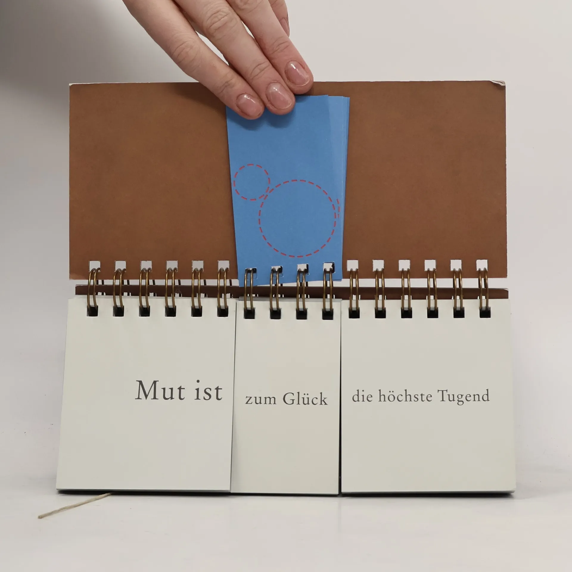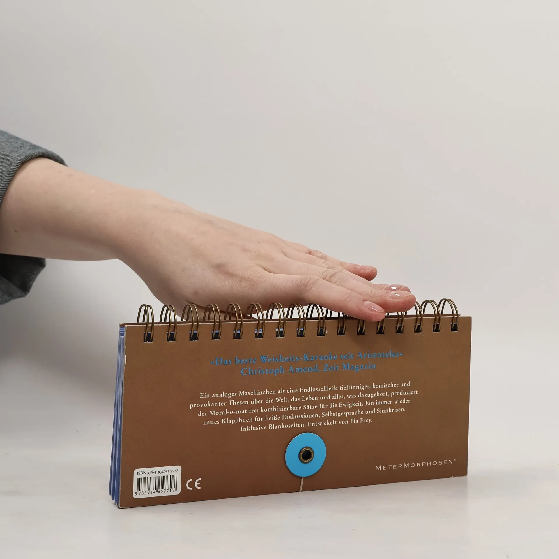 Wünscht sich das nicht jeder: zu jedem Stichwort die passende Weisheit parat zu haben? Bitteschön, dafür gibt es jetzt ein manuelles Wundermaschinchen, den Moral-o-mat: Im Handumdrehen generiert er 125.000 schlagkräftige Behauptungen, die garantiert Staunen hervorrufen – oder entschiedene Gegenrede provozieren. Das klappt immer, denn die Satzbausteine sind frei zu kombinieren – und ergeben sofort Sinn. Eine streitbare These folgt auf die nächste. Endlich kann jeder mit Intellekt und Weitsicht glänzen. Der Moral-o-mat produziert Sätze ohne Haltbarkeitsdatum, mit denen sich jede Diskussion auf die intellektuelle Meta-Ebene hieven lässt. Denn er zeigt, die Wahrheit ist vielgestaltig, aber nicht beliebig. Die Berliner Autorin und Journalistin Pia Frey, der wir schon den überaus amüsanten und erfolgreichen SinnfragenKombinator verdanken, hat die essentiellen Themen der Gegenwart integriert, indem sie neben Adverbien und Eigenschaftworten Substantive wie Freiheit und Denken, Glück und Gerechtigkeit, Religion und Angst für die Kombinationen aufgenommen hat. • 50 x 50 x 50 separate Begriffsgruppen als Klappkarten im Tischkalenderformat • 125.000 willkürlich kombinierbare, lustige und provokante Thesen zu Leben und Gesellschaft • Groß klingende Worte hinterfragen: Wo steckt echte Erkenntnis drin? Was sind pseudointellektuelle Buzzwords? • Überraschung: Auch scheinbar Absurd- Zufälliges kann einen hintergründigen Sinn haben
