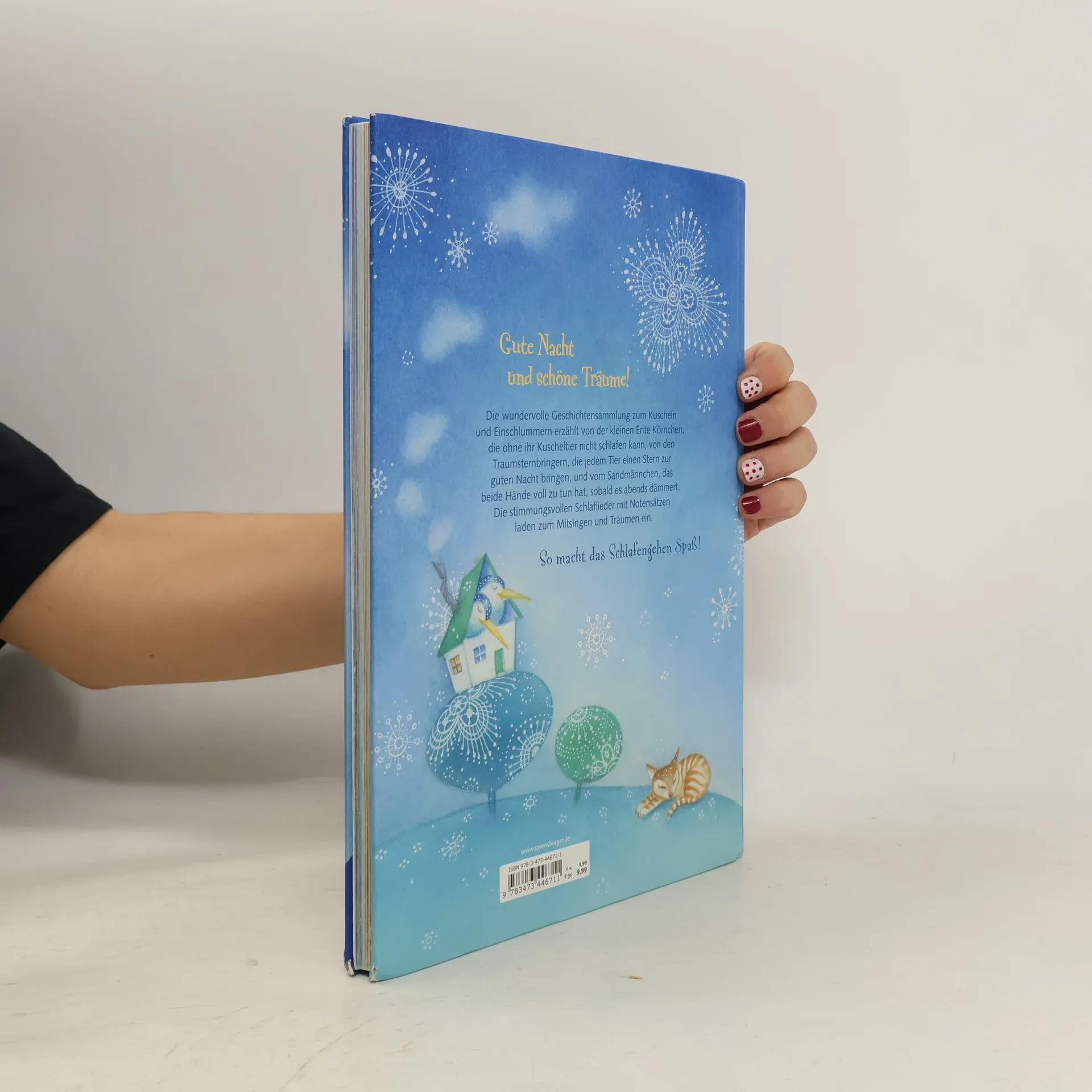 Ein wunderschön illustrierter Geschichten- und Liederschatz zum Vorlesen, Anschauen und Singen: Zwei komplette Bilderbuchgeschichten erzählen von der Ente Körnchen und von den Traumsternbringern. Außerdem gibt es 27 kurze Geschichten vom Sandmännchen und zehn der bekanntesten Gutenachtlieder: Eine abwechslungsreiche Mischung für die ganz besondere Zeit vor dem Schlafengehen!