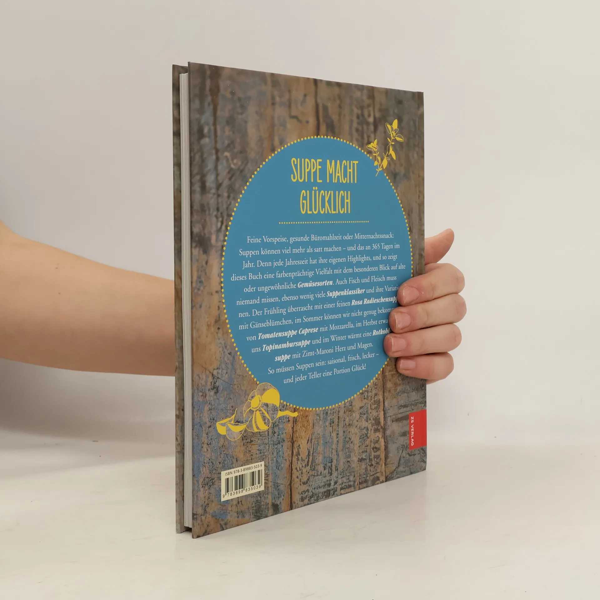 Ein Topf, viel Genuss Löffel für Löffel durch die Jahreszeiten – eine selbstgekochte Suppe tut immer gut! Im Suppentopf von Michaela Bauer landen saisonale Produkte, buntes Gemüse und duftende Gewürze. Über 80 Rezepte bescheren echtes Löffelglück: Alte Gemüsesorten und knusprige Toppings lassen uns Neues entdecken. Im Winter kommen wärmende Eintöpfe auf den Tisch und samtige Seelenwärmer, im Sommer eisgekühlter Gazpacho und bunte Ur-Möhren-Currysuppe. Eine ausführliche Warenkunde stellt ungewöhnliche Gemüsesorten von Knolleziest bis Queller vor und im Theorieteil lernt jeder, welcher Fond die richtige Grundlage für welche Suppe ist. Varianten zu den Rezepten schaffen Vielfalt und zeigen schmackhafte Alternativen – mal ganz schnell gemacht, mal raffinert, mal vegan. Auch für die Süßschnäbel sind in jedem Kapitel süße Suppen mit dabei. - Butternutsuppe mit Ingwer & Orangengremolata - Rinderbouillon mit Parmesannockerl - Muschelsuppe mit Weißwein & Curry-Kokosmilch - Birnengewürzsuppe mit Grießklößchen - Holunderblütensuppe mit Erdbeeren Pures Löffelglück - Kapitel aufgeteilt in Jahreszeiten - Saisonal, gesund und vielfältig - Große Warenkunde für alte Gemüsesorten - Varianten und Alternativen für mehr Möglichkeiten auf dem Teller