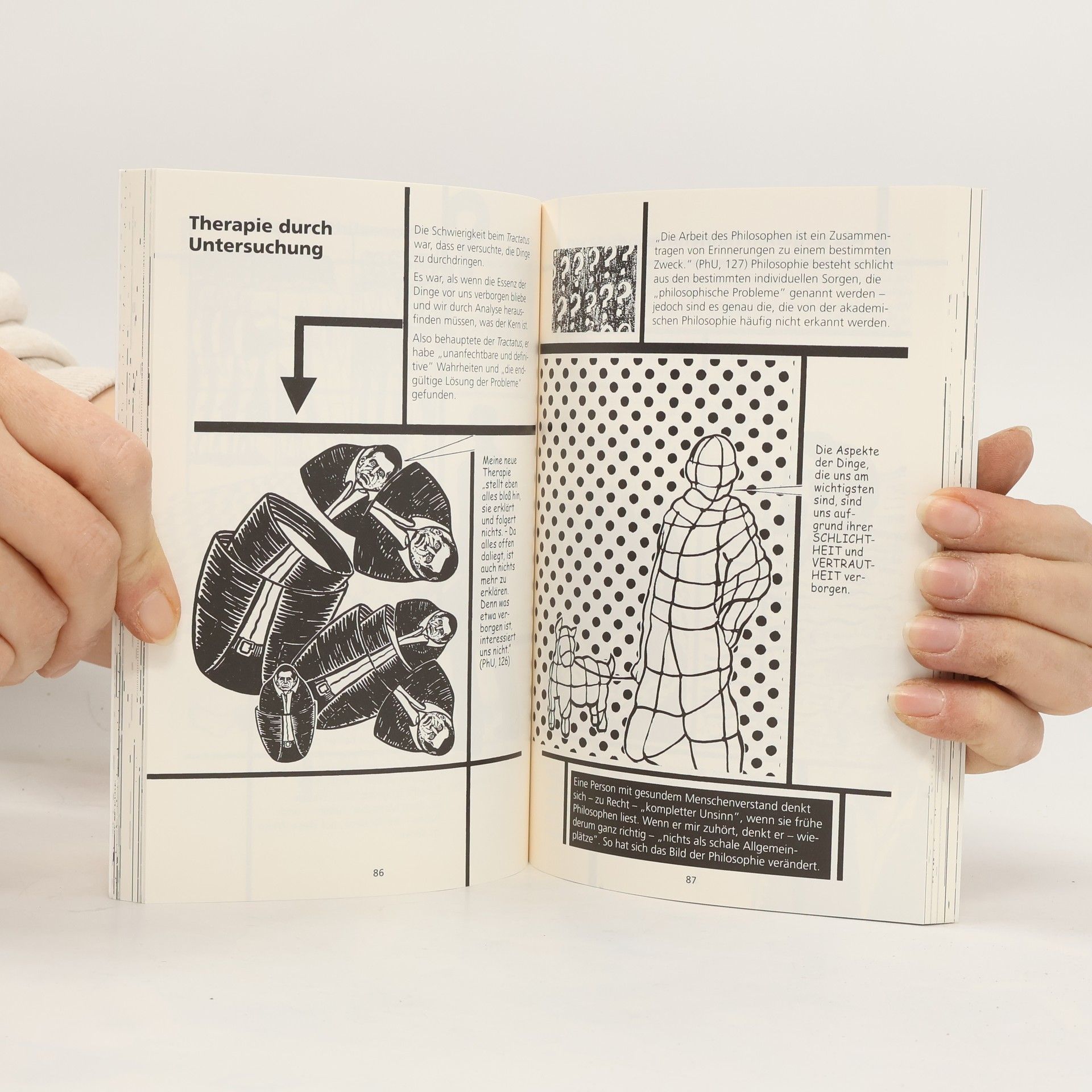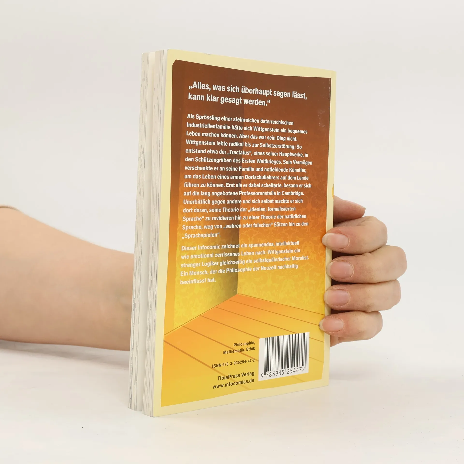 „Alles, was sich überhaupt sagen lässt, kann klar gesagt werden.“ Als Sprössling einer steinreichen österreichischen Industriellenfamilie hätte sich Wittgenstein ein bequemes Leben machen können. Aber das war sein Ding nicht. Wittgenstein lebte radikal bis zur Selbstzerstörung: So entstand etwa der „Tractatus“, eines seiner Hauptwerke, in den Schützengräben des Ersten Weltkrieges. Sein Vermögen verschenkte er an seine Familie und notleidende Künstler, um das Leben eines armen Dorfschullehrers auf dem Lande führen zu können. Erst als er dabei scheiterte, besann er sich auf die lang angebotene Professorenstelle in Cambridge. Unerbittlich gegen andere und sich selbst machte er sich dort daran, seine Theorie der „idealen, formalisierten Sprache“ zu revidieren hin zu einer Theorie der natürlichen Sprache, weg von „wahren oder falschen“ Sätzen hin zu den „Sprachspielen“. Dieses Infocomic zeichnet ein spannendes, intellektuell wie emotional zerrissenes Leben nach: Wittgenstein ein strenger Logiker gleichzeitig ein selbstquälerischer Moralist. Ein Mensch, der die Philosophie der Neuzeit nachhaltig beeinflusst hat.