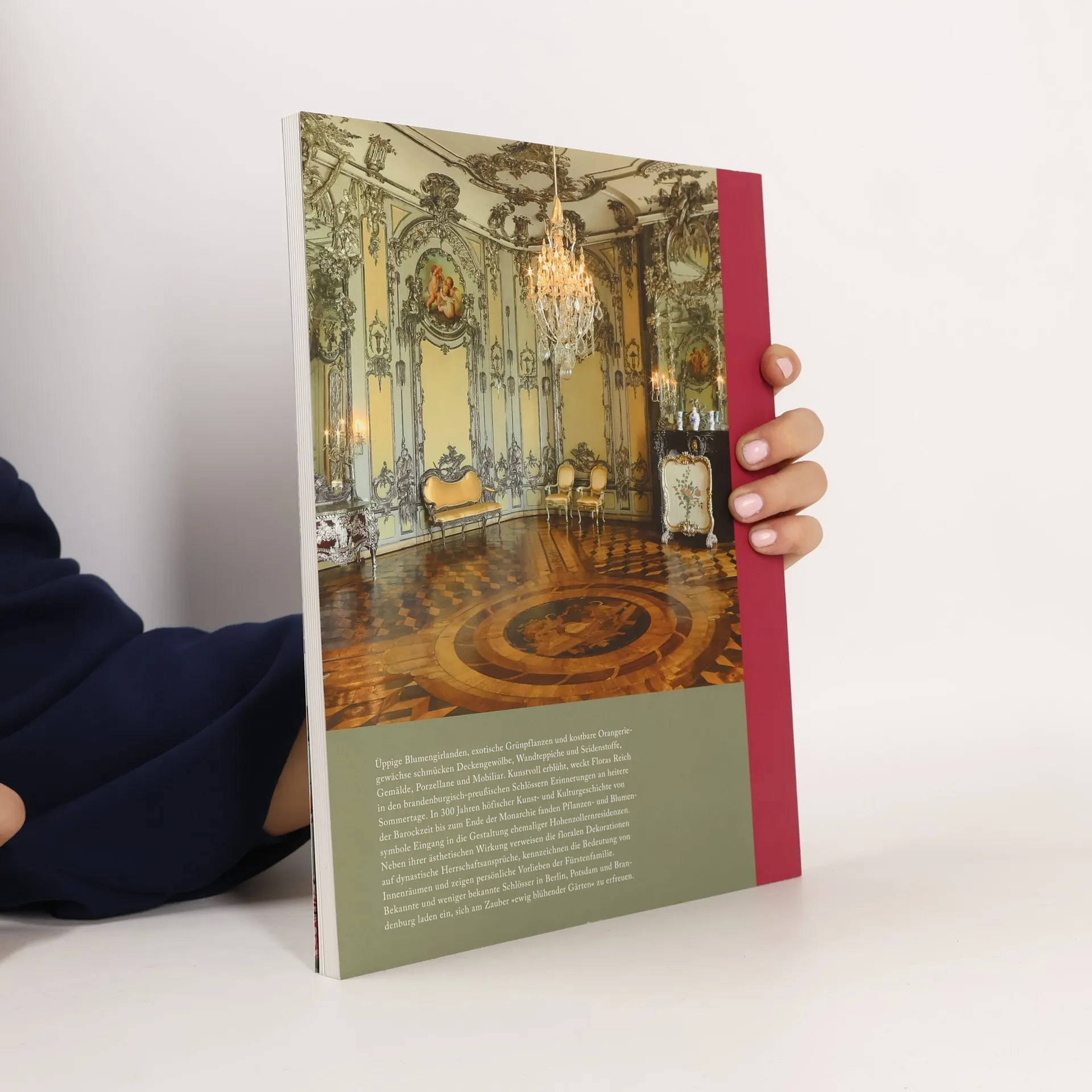Üppige Blumenbouquets, exotische Grünpflanzen und kostbare Orangeriegewächse schmücken Deckengewölbe, Wandteppiche und Seidenstoffe, Gemälde, Porzellane und erlesenes Mobiliar. Kunstvoll erblüht, weckt Floras Reich in den brandenburgisch-preußischen Schlössern Erinnerungen an heitere Sommertage. In 300 Jahren höfischer Kunst- und Kulturgeschichte von der Barockzeit bis zum Ende der Monarchie fanden modische Pflanzen und Blumensymbole Eingang in die Gestaltung der Hohenzollernresidenzen. Neben ihrer ästhetischen Wirkung verweisen die floralen Dekorationen auch auf dynastische Herrschaftsansprüche, prägen die Bedeutung von Innenräumen und zeigen persönliche Vorlieben fürstlicher Schlossbewohner. Noch heute erfreuen die Schlösser mit „ewig blühenden Gärten“ zahlreiche Besucher.