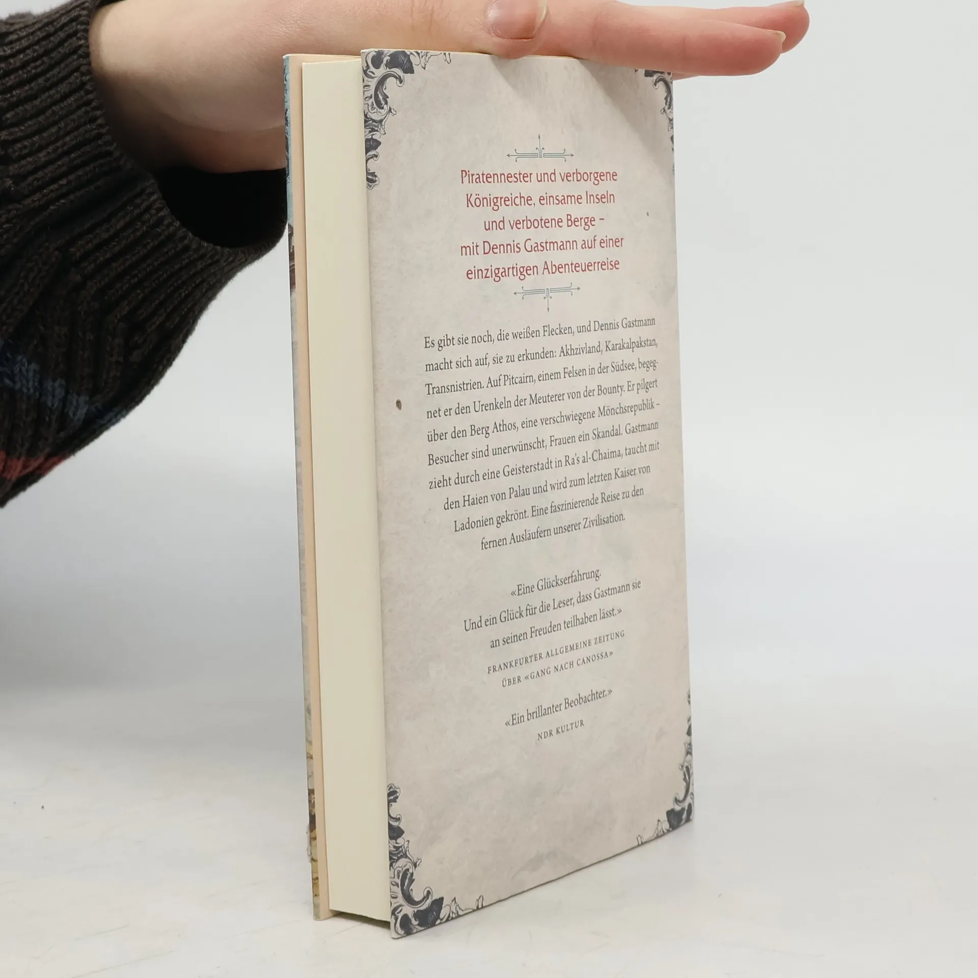 Nach Marco Polo, Kolumbus und Millionen Touristen scheint jeder Winkel der Welt entdeckt ̶ doch das ist ein Irrtum! Dennis Gastmann erkundet Orte, die fern, unbekannt oder vergessen und in jedem Fall magisch sind: Akhzivland, Karakalpakstan, R’as al-Chaima. Auf dem Südsee-Felsen Pitcairn begegnet er den Nachfahren der Meuterer von der Bounty, in Palau taucht er mit Haien. Er wandert durch die tausendjährige Mönchsrepublik auf dem Berg Athos, in der Besucher unerwünscht sind, die bärtigen Heiligen wollen unter sich bleiben. Gastmann sucht nach Liebe in Transnistrien, einem Mafiastaat, der Besuchern empfiehlt: «Fahren Sie lieber nach Spanien!» Er begegnet Geistern und Dämonen, gerät in einen Taifun und wird zum letzten Kaiser von Ladonien gekrönt… Mit Charme und Hintersinn begibt sich Dennis Gastmann zu den Ausläufern unserer Zivilisation. Wie sieht es dort aus? Wie lebt man dort? Und was sagt das über den Rest unserer durchorganisierten Welt?