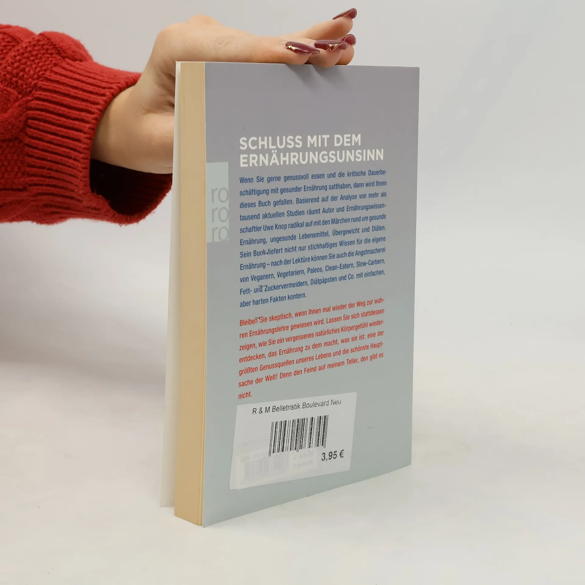 Schluss mit dem Ernährungsunsinn Wenn Sie gerne genussvoll essen und die kritische Dauerbeschäftigung mit gesunder Ernährung satthaben, dann wird Ihnen dieses Buch gefallen. Basierend auf der Analyse von mehr als tausend aktuellen Studien räumt Autor und Ernährungswissenschaftler Uwe Knop radikal auf mit den Märchen rund um gesunde Ernährung, ungesunde Lebensmittel, Übergewicht und Diäten. Sein Buch liefert nicht nur stichhaltiges Wissen für die eigene Ernährung – nach der Lektüre können Sie auch die Angstmacherei von Veganern, Vegetariern, Paleos, Clean-Eatern, Slow-Carbern, Fett- und Zuckervermeidern, Diätpäpsten und Co. mit einfachen, aber harten Fakten kontern. Bleiben Sie skeptisch, wenn Ihnen mal wieder der Weg zur wahren Ernährungslehre gewiesen wird. Lassen Sie sich stattdessen zeigen, wie Sie ein vergessenes natürliches Körpergefühl wiederentdecken, das Ernährung zu dem macht, was sie ist: eine der größten Genussquellen unseres Lebens und die schönste Hauptsache der Welt! Denn den Feind auf meinem Teller, den gibt es nicht.