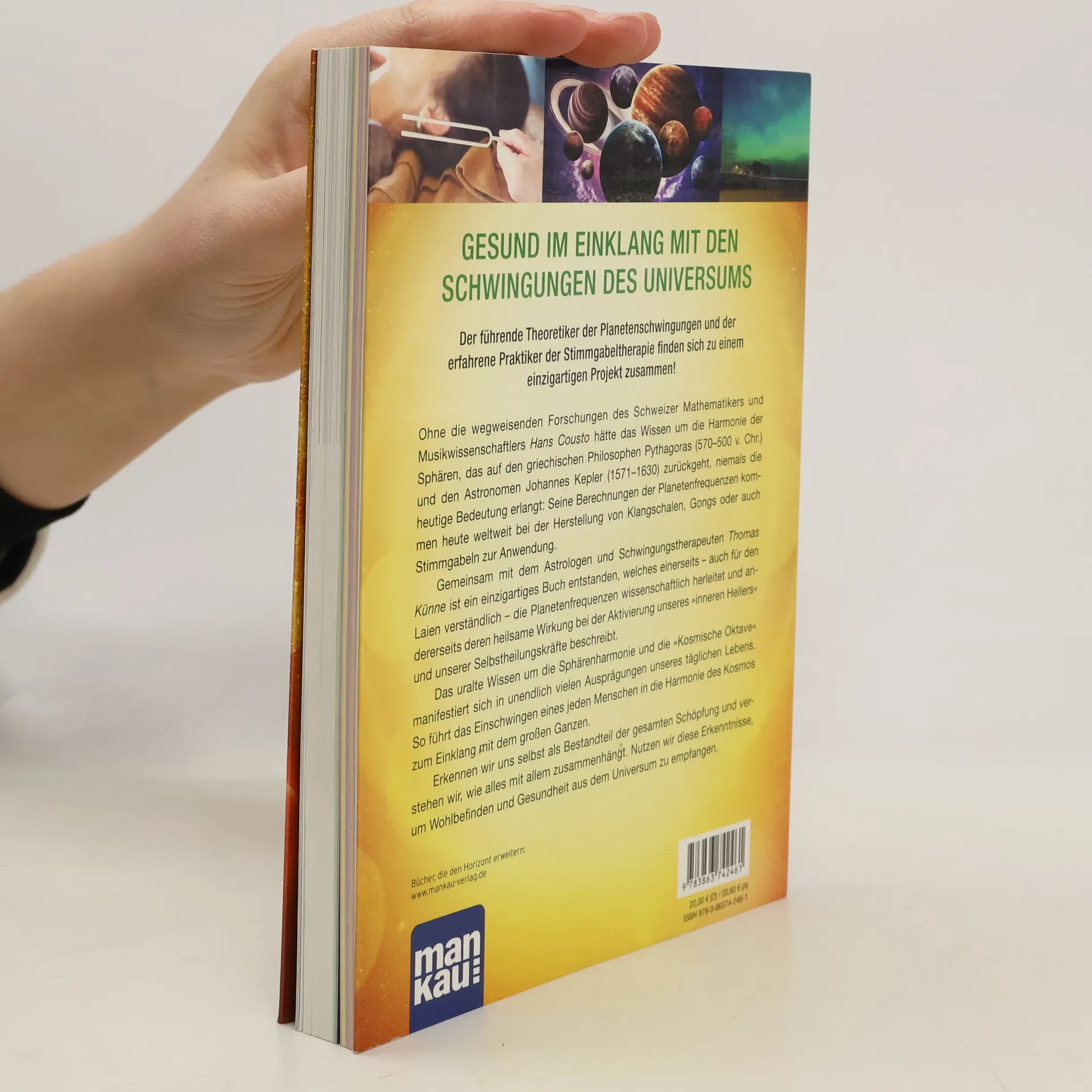 Der führende Theoretiker der Planetenschwingungen und der erfahrene Praktiker der Stimmgabeltherapie finden sich zu einem einzigartigen Projekt zusammen!Ohne die wegweisenden Forschungen des Schweizer Mathematikers und Musikwissenschaftlers Hans Cousto hätte das Wissen um die Harmonie der Sphären, das auf den griechischen Philosophen Pythagoras (570 - 500 v. Chr.) und den Astronomen Johannes Kepler (1571 - 1630) zurückgeht, niemals die heutige Bedeutung Seine Berechnungen der Planetenfrequenzen kommen heute weltweit bei der Herstellung von Klangschalen, Gongs oder auch Stimmgabeln zur Anwendung.Gemeinsam mit dem Astrologen und Schwingungstherapeuten Thomas Künne ist ein Buch entstanden, welches einerseits - auch für den Laien verständlich - die Planetenfrequenzen wissenschaftlich herleitet und andererseits deren heilsame Wirkung bei der Aktivierung unseres "inneren Heilers" und unserer Selbstheilungskräfte beschreibt.Das uralte Wissen um die Sphärenharmonie und die kosmische Oktave manifestiert sich in unendlich vielen Ausprägungen unseres täglichen Lebens. So führt das Einschwingen eines jeden Menschen in die Harmonie des Kosmos zum Einklang mit dem großen Ganzen.Erkennen wir uns selbst als Bestandteil der gesamten Schöpfung und verstehen wir, wie alles mit allem zusammenhängt. Und nutzen wir diese Erkenntnisse, um Wohlbefinden und Gesundheit aus dem Universum zu empfangen.