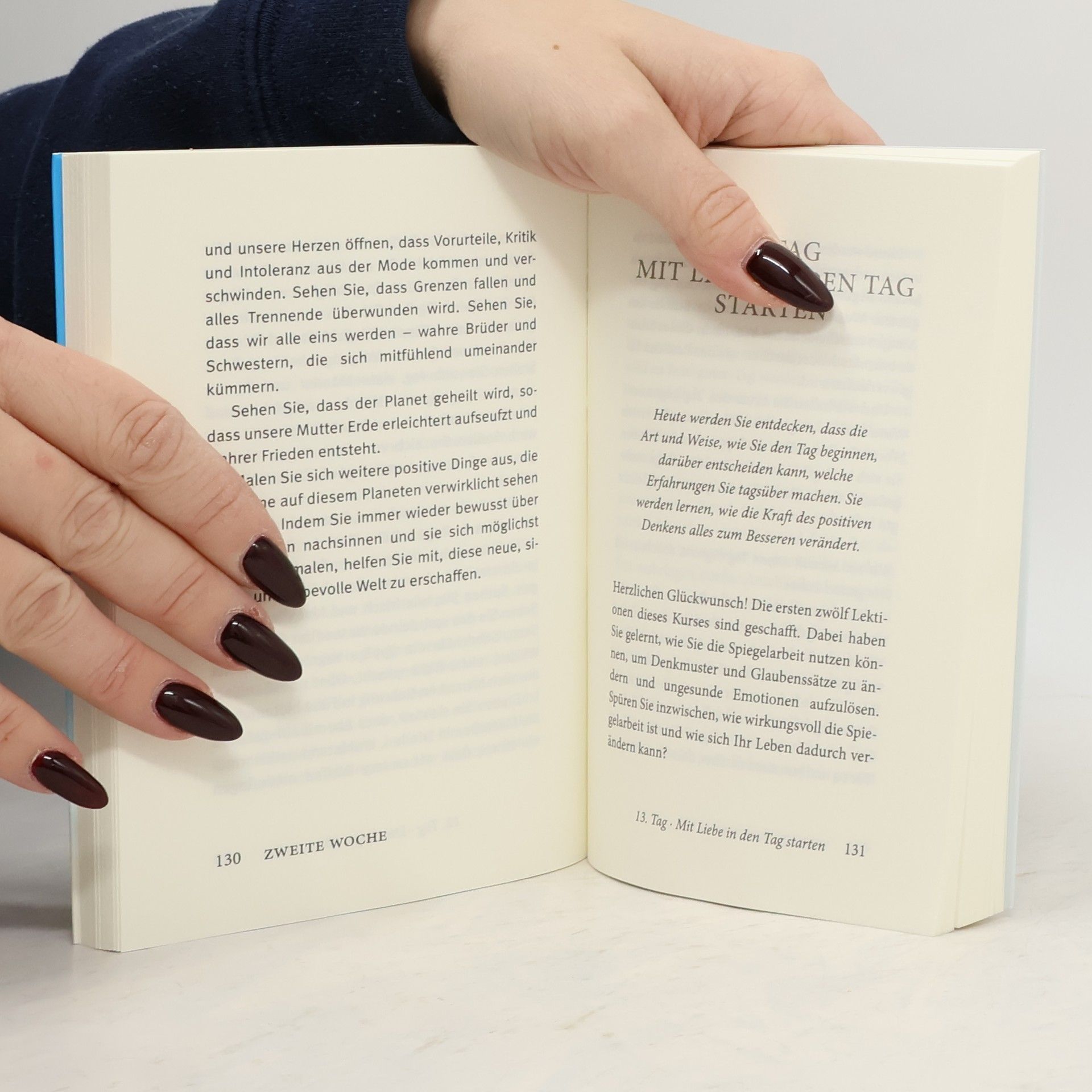 In einem einfachen 21-Tage Programm lehrt Louise Hay , wie man vor dem Spiegel sein Selbstbild mit Hilfe ihrer berühmten Affirmationen nachhaltig ins Postive wendet. Spiegelarbeit besteht einfach darin, sich selbst tief in die Augen zu schauen und dabei Affirmationen zu wiederholen. Für Louise ist das die wirksamste Methode, um sich selbst lieben zu lernen. Positive Affirmationen tränken das Unterbewusstsein mit heilenden Gedanken und Vorstellungen, die dabei helfen, Selbstvertrauen und Selbstachtung zu entwickeln. Sie erzeugen geistigen Frieden und innere Freude
