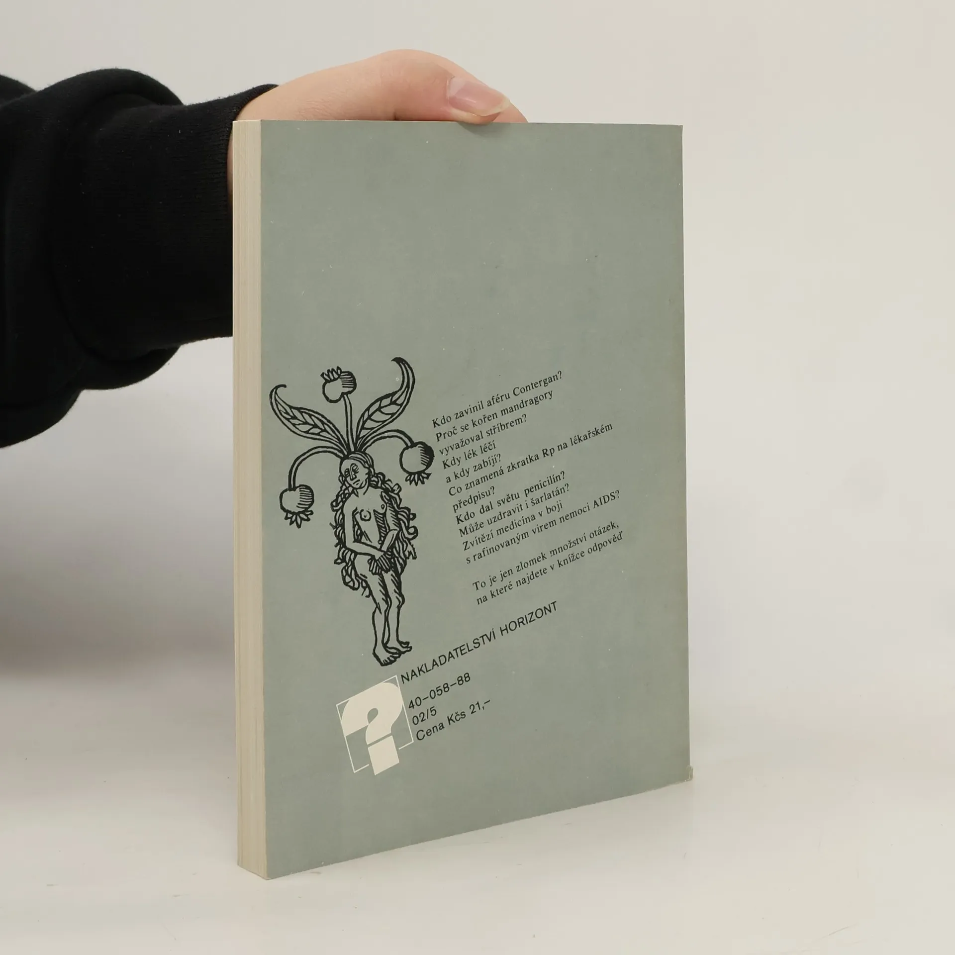 Z obsahu: Proč to bolí?, Medicína na Nilu, Léčiva nejstarších civilizací, Na druhé straně oceánu, Rostliny s léčivou mocí, Léčivé rostliny dnes, Lék nebo jed?, Aby to nebolelo čili o narkóze, Ti, kteří se zasloužili, Muž,který dal světu penicilín, Malá historie lékáren, Šarlatáni, Jak působí lék?, Jak vzniká moderní lék?, Nejvzácnější lék na světě, Hrozba rafinovaného viru