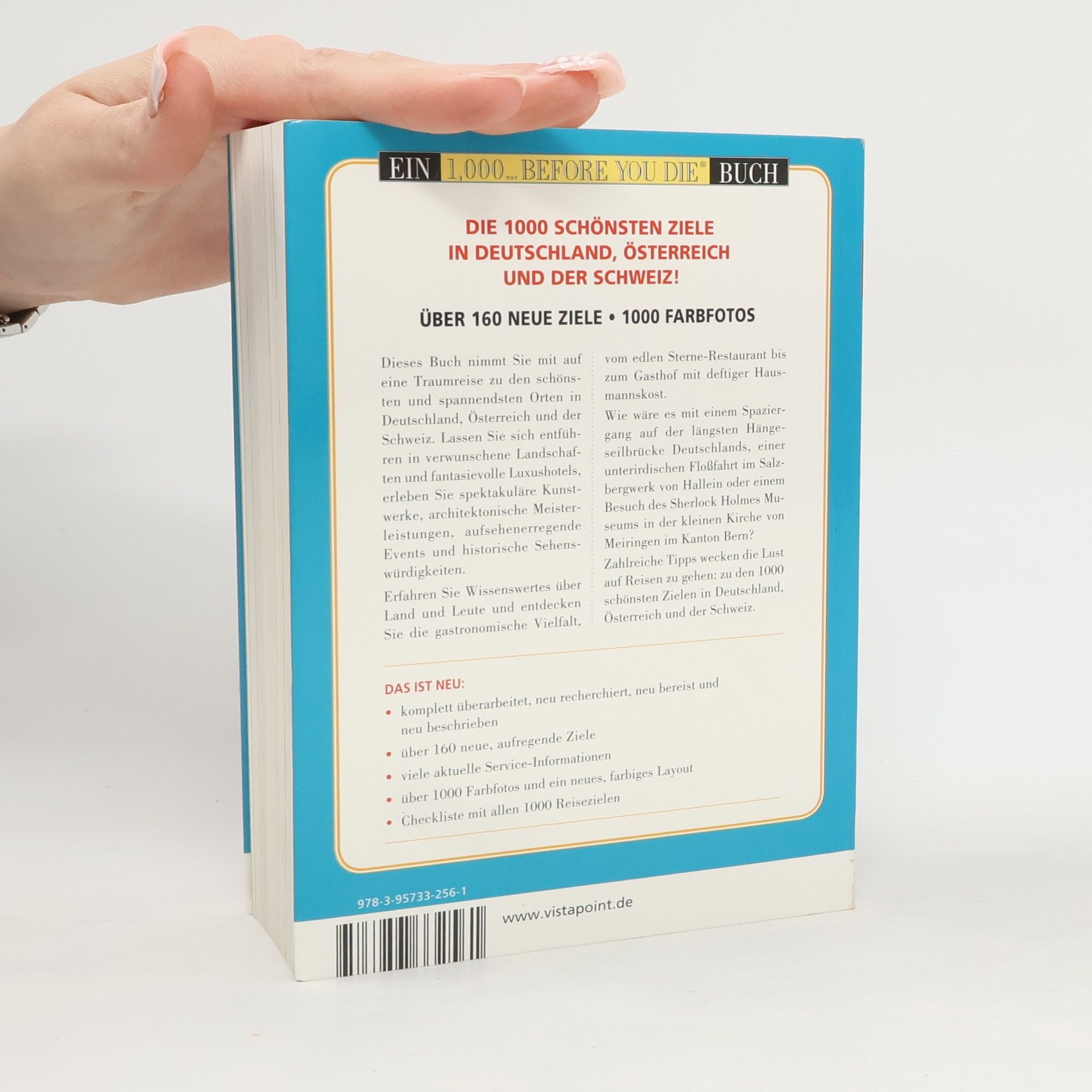 Der Drang, neue Ziele zu entdecken, ist so alt wie die Menschheit selbst. Doch ob eine Reise zum Erlebnis wird, hängt nicht von der zurückgelegten Kilometeranzahl ab. Oft übersehen wir die Schönheiten direkt vor der eigenen Haustür. Dieses Buch präsentiert die 1000 schönsten und interessantesten Sehenswürdigkeiten in Deutschland, Österreich und der Schweiz und dient als Inspirationsquelle für den nächsten Urlaub oder Kurztrip. Auf 1168 Seiten finden sich beflügelnde Anregungen und notwendige Informationen für die Lebensliste zum Reisen. Die neu recherchierte und reich bebilderte Ausgabe bietet ein inspirierendes Potpourri aus Bekanntem und Überraschendem. Neben Wahrzeichen wie dem Kölner Dom und historisch bedeutsamen Bauwerken wie der Gedenkstätte Berliner Mauer werden auch versteckte Kleinode wie die längste Hängeseilbrücke Deutschlands und unterirdische Floßfahrten im Salzbergwerk vorgestellt. Die aktuelle Ausgabe besticht durch ein großzügiges Layout mit einem Reiseziel pro Seite, begleitet von hochwertigen Farbfotos. Vielreisende werden sich über die Checkliste am Ende freuen. Über 160 neue und spannende Reiseziele ergänzen die Auswahl, inspiriert von der US-amerikanischen Reisejournalistin Patricia Schultz. Die Autoren, erfahrene Reisejournalisten, bringen ihren Lesern nicht nur bekannte Sehenswürdigkeiten näher, sondern auch wertvolle Geheimtipps.