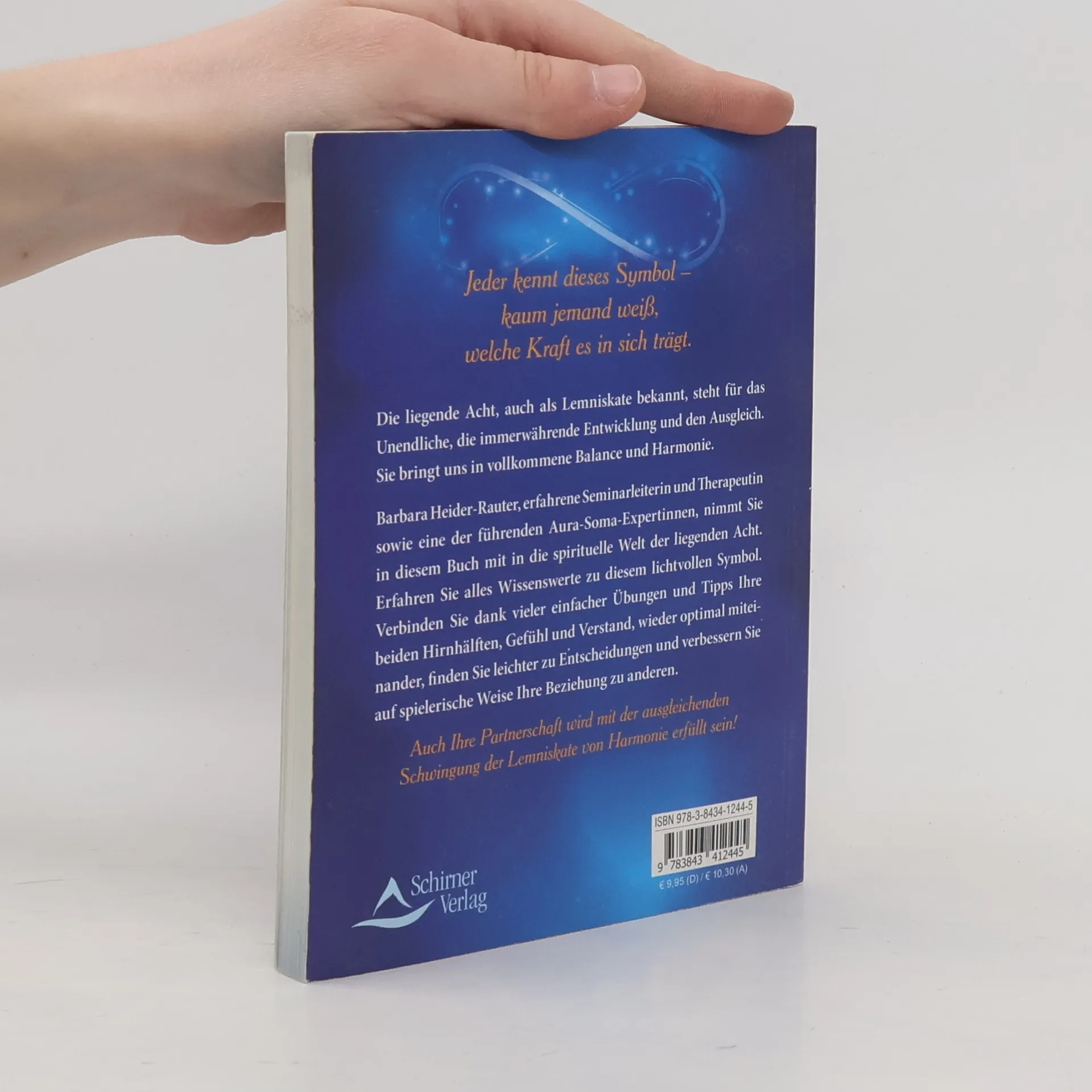 Jeder kennt dieses Symbol – kaum jemand weiß, welche Kraft es in sich trägt. Die liegende Acht, auch als Lemniskate bekannt, steht für das Unendliche, die immerwährende Entwicklung und den Ausgleich. Sie bringt uns in vollkommene Balance und Harmonie. Barbara Heider-Rauter, erfahrene Seminarleiterin und Therapeutin sowie eine der führenden Aura-Soma-Expertinnen, nimmt Sie in diesem Buch mit in die spirituelle Welt der liegenden Acht. Erfahren Sie alles Wissenswerte zu diesem lichtvollen Symbol. Verbinden Sie dank vieler einfacher Übungen und Tipps Ihre beiden Hirnhälften, Gefühl und Verstand, wieder optimal miteinander, finden Sie leichter zu Entscheidungen und verbessern Sie auf spielerische Weise Ihre Beziehung zu anderen. Auch Ihre Partnerschaft wird mit der ausgleichenden Schwingung der Lemniskate von Harmonie erfüllt sein!