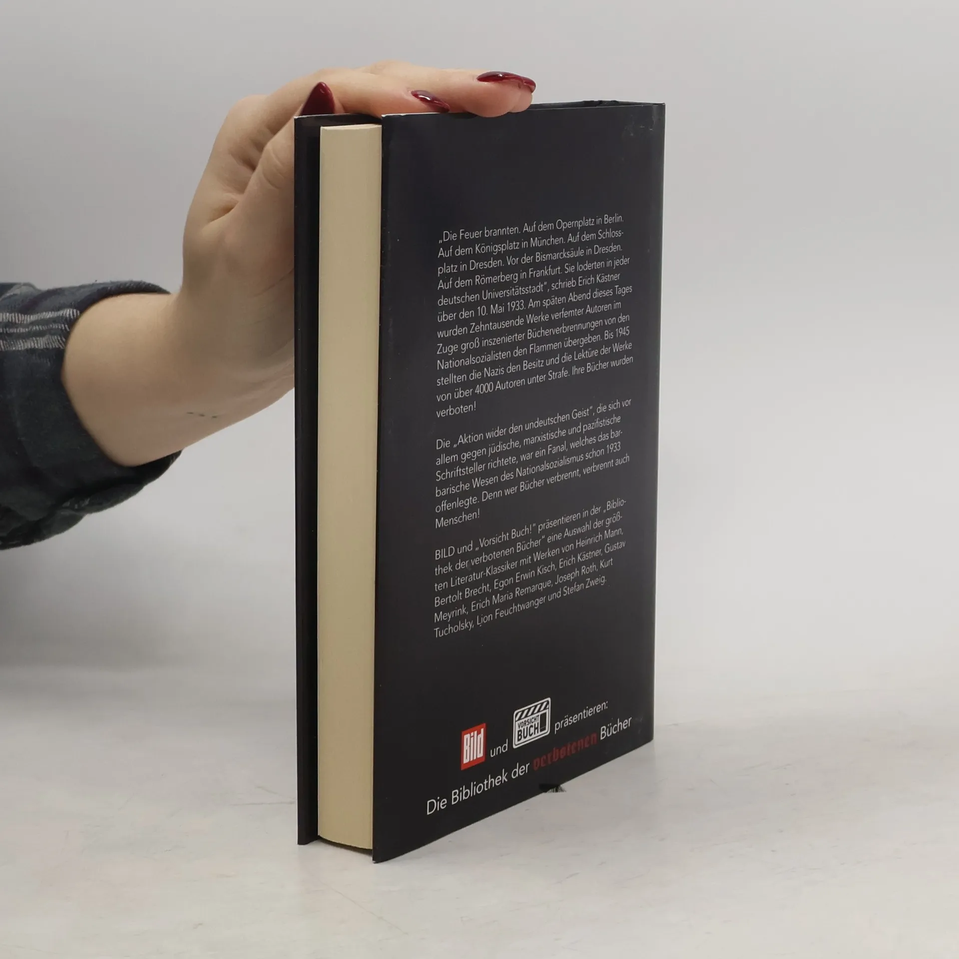 "Die Feuer brannten. Auf dem Opernplatz in berlin. Auf dem Königsplatz in München. Auf dem Schlossplatz in Dresden. Vor der Bismarcksäule in Dresden. Auf dem Römerberg in Frankfurt. SIe loderten in jeder deutschen Universitätsstadt", schrieb Erich Kästner über den 10. Mai 1933. Am späten Abend dieses Tages wurden Zehntausende Werke verfemter AUtoren im Zuge groß inszenierter Bücherverbrennungen von den Nationalsozialisten den Flammen übergeben. Bis 1945 sollten die Nazis den Besitz un die Lektüre der Werke von über 4000 Autoren unter Strafe. Ihre Bücher wurden verboten! Die "Aktion wider den deutschen Geist", die sich vor allem gegen jüdische, marxistische und pazifistische Schriftsteller richtete, war ein Fanal, welches das barbarische WEsen des Nationalsozialismus schon 1933 offenlegte. Denn wer Bücher verbrennt, verbrennt auch Menschen! Bild und "Vorsicht Buch!" präsentieren in der "Bibliothek der verbotenen Bücher"! eine Auswahl der größten Literaturklassiker...