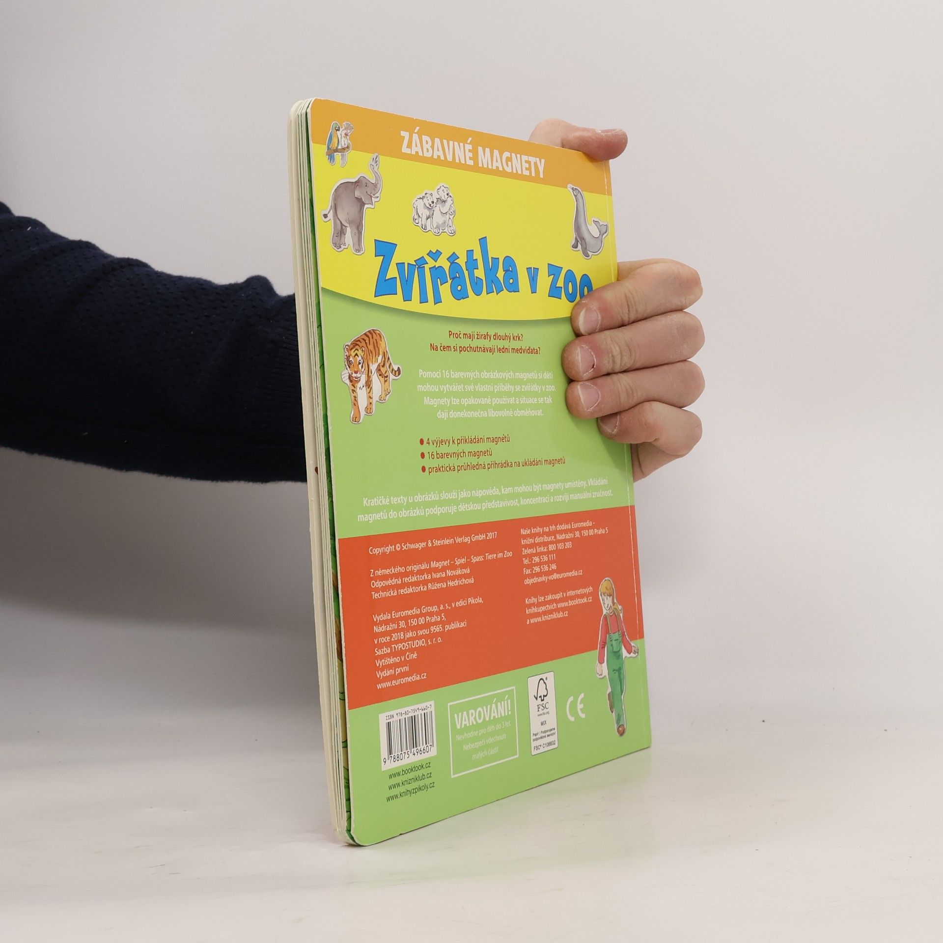 Pomocí 16 barevných obrázkových magnetů si děti mohou vytvářet své vlastní příběhy se zvířátky v zoo.
