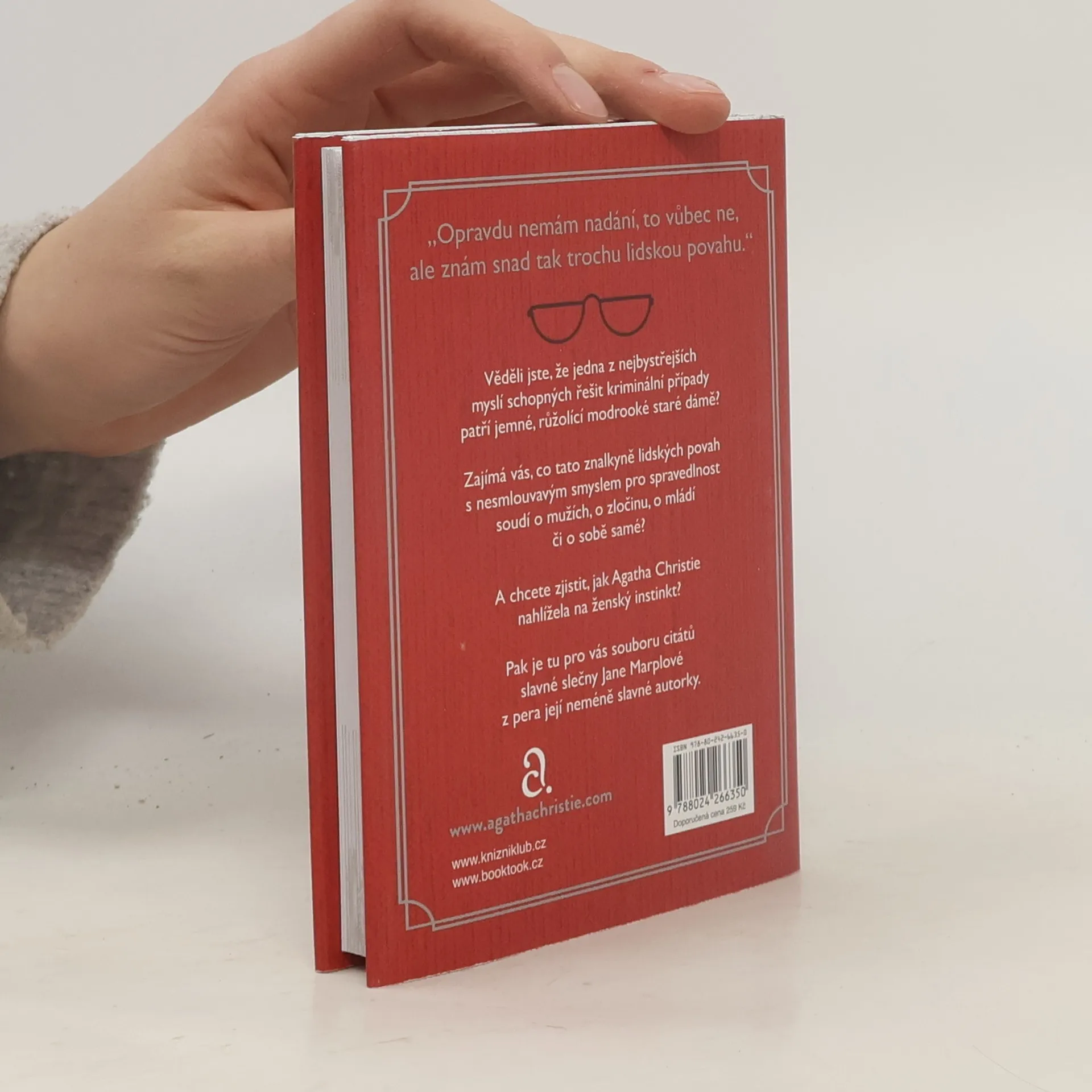 „Opravdu nemám nadání, to vůbec ne, ale znám snad tak trochu lidskou povahu.“ Po knize citátů „Malé šedé buňky: Jak to vidí Poirot“ vydává nakladatelství Kalibr také soubor citátů slečny Marplové „To je vražda, řekla“. Slavné výroky a úvahy zvídavé růžolící stařenky – o zločinu, mužích a ženách, mládí, životě i o sobě samé – doplňuje esej na téma „dělá ženská intuice z ženy dobrého detektiva?“, kterou Agatha Christie napsala jako lákadlo na knihy se svou nejslavnější pátračkou.