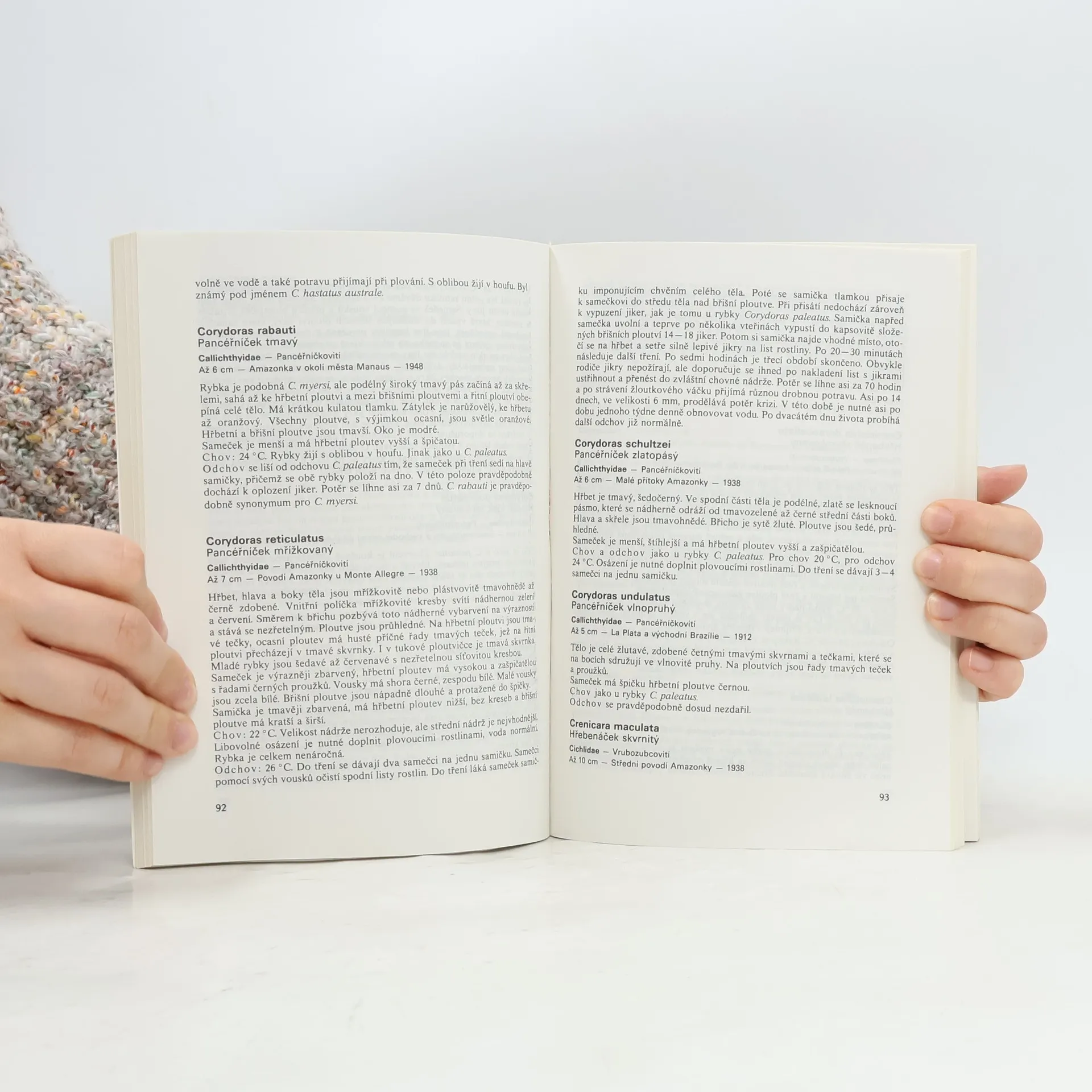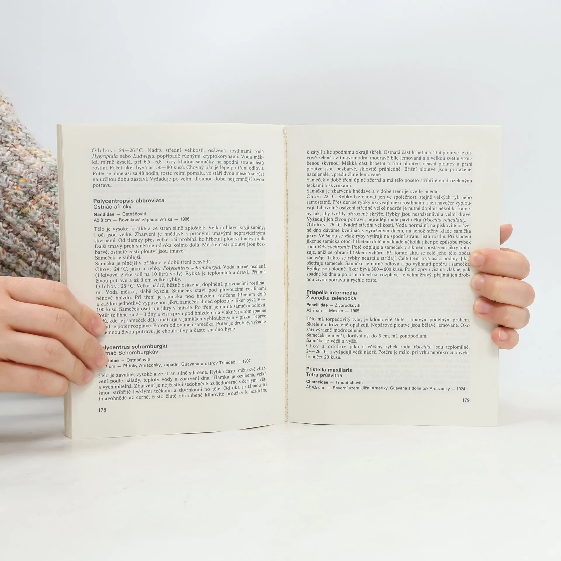 Při popisu jednotlivých druhů akvarijních ryb uvádí autor kromě latinského a českého názvu i příslušnou čeleď, maximální velikost, místo původu, rok dovozu do Evropy, popis ryby, její chov a odchov. Publikace je uvedenavšeobecnou statí o chovu akvarijních ryb, jejich krmení apod. 8. upravené vydání.