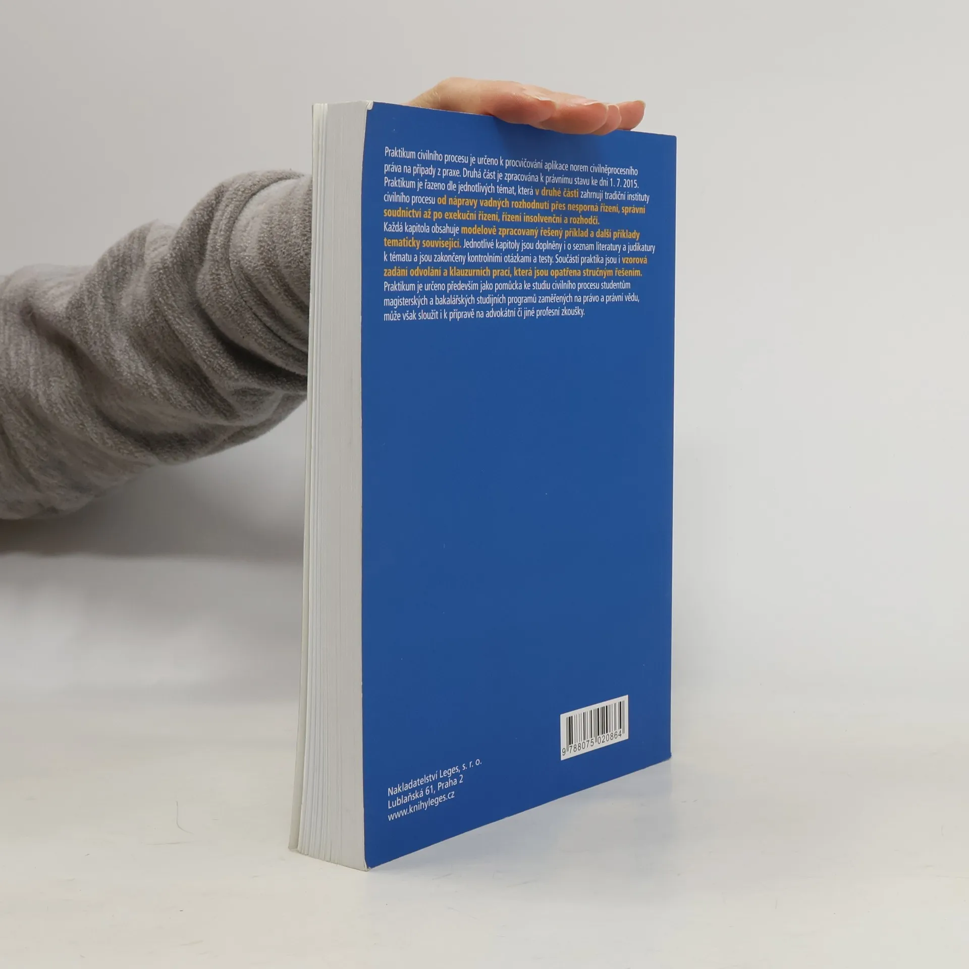 Praktikum civilního procesu je určeno k procvičování aplikace norem civilněprocesního práva na případy z praxe. Druhá část je zpracována k právnímu stavu ke dni 1. 7. 2015. Praktikum je řazeno dle jednotlivých témat, která v druhé části zahrnují tradiční instituty civilního procesu od nápravy vadných rozhodnutí, přes nesporná řízení, správní soudnictví až po exekuční řízení, řízení insolvenční a rozhodčí. Každá kapitola obsahuje modelově zpracovaný řešený příklad a další příklady tematicky související. Jednotlivé kapitoly jsou doplněny i o seznam literatury a judikatury k tématu a jsou zakončeny kontrolními otázkami a testy. Součástí praktika jsou i vzorová zadání odvolání a klauzurních prací, která jsou opatřena stručným řešením. Praktikum je určeno především jako pomůcka ke studiu civilního procesu studentům magisterských a bakalářských studijních programů zaměřených na právo a právní vědu, může však sloužit i k přípravě na advokátní či jiné profesní zkoušky.