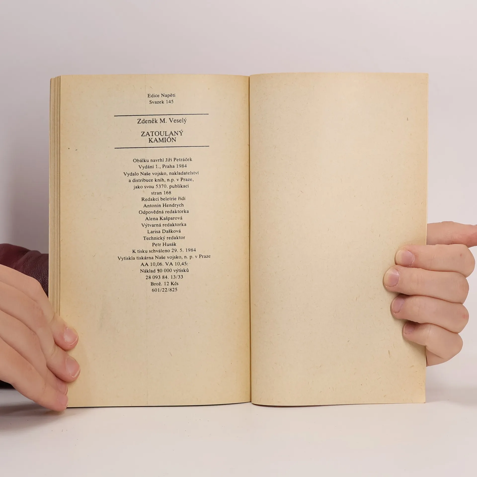Napínavé vyprávění o dvou řidičích kamionu československé přepravní dálkové společnosti, na které se v zahraničí zaměří obchodníci a pašeráci zbraní a pokouší se s jejich nevědomou pomocí provést nebezpečný náklad přes hranice. Identifikační číslo tohoto vydání knihy je28-093-84 .