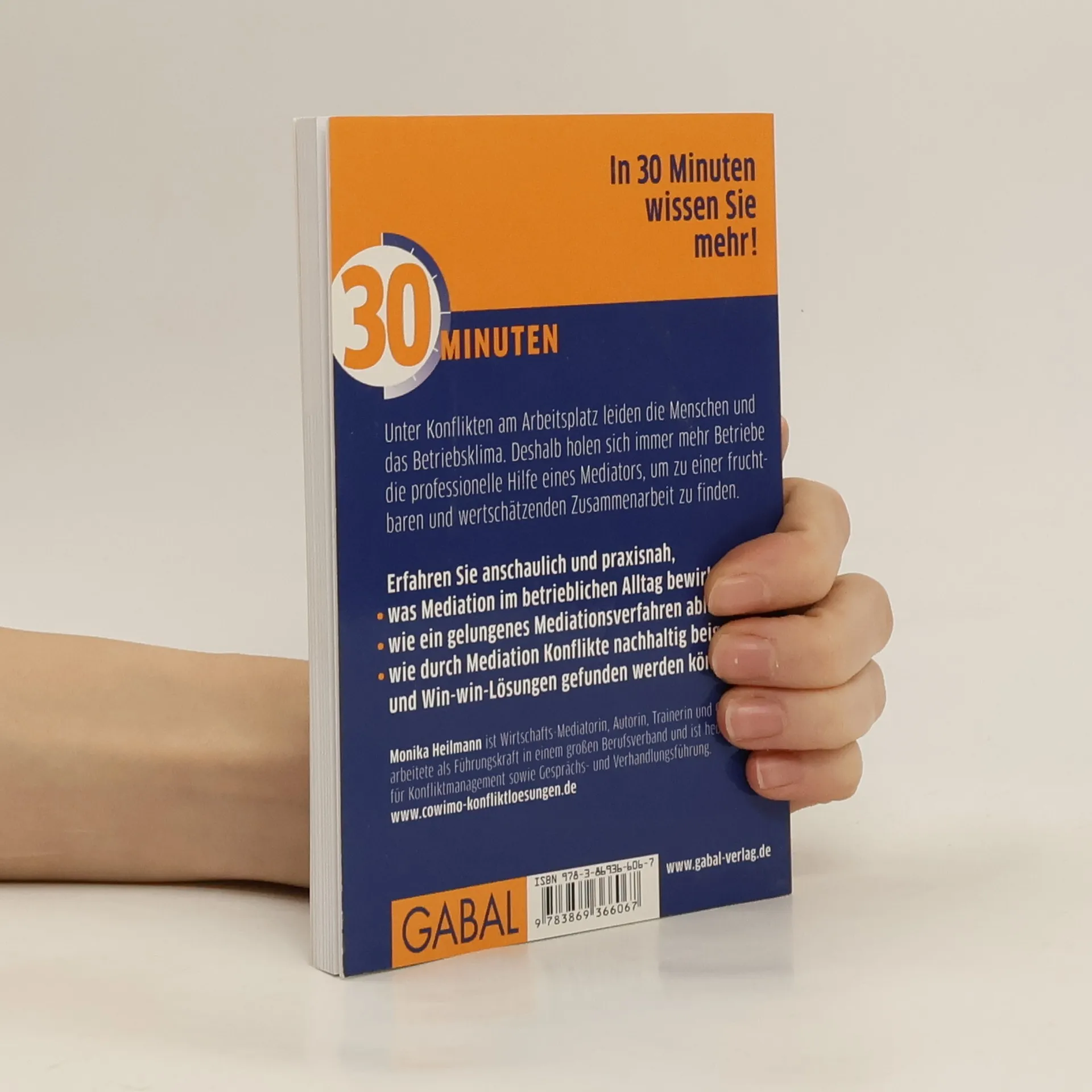 Unter Konflikten am Arbeitsplatz leiden die Menschen und das Betriebsklima. Deshalb holen sich immer mehr Betriebe die professionelle Hilfe eines Mediators, um wieder zu einer fruchtbaren und wertschätzenden Zusammenarbeit zu finden. Monika Heilmann möchte Verständnis für den Mediationsprozess schaffen und Hemmschwellen von Mitarbeitern, Führungskräften und Personalmanagern gegenüber einer Mediation abbauen. Sie schildert, was Mediation im betrieblichen Alltag bewirken kann, und macht das Verfahren der Mediation transparent. Anschaulich und praxisnah wird so nachvollziehbar, wie durch Mediation Konflikte nachhaltig beigelegt und Win-win-Lösungen gefunden werden können.
