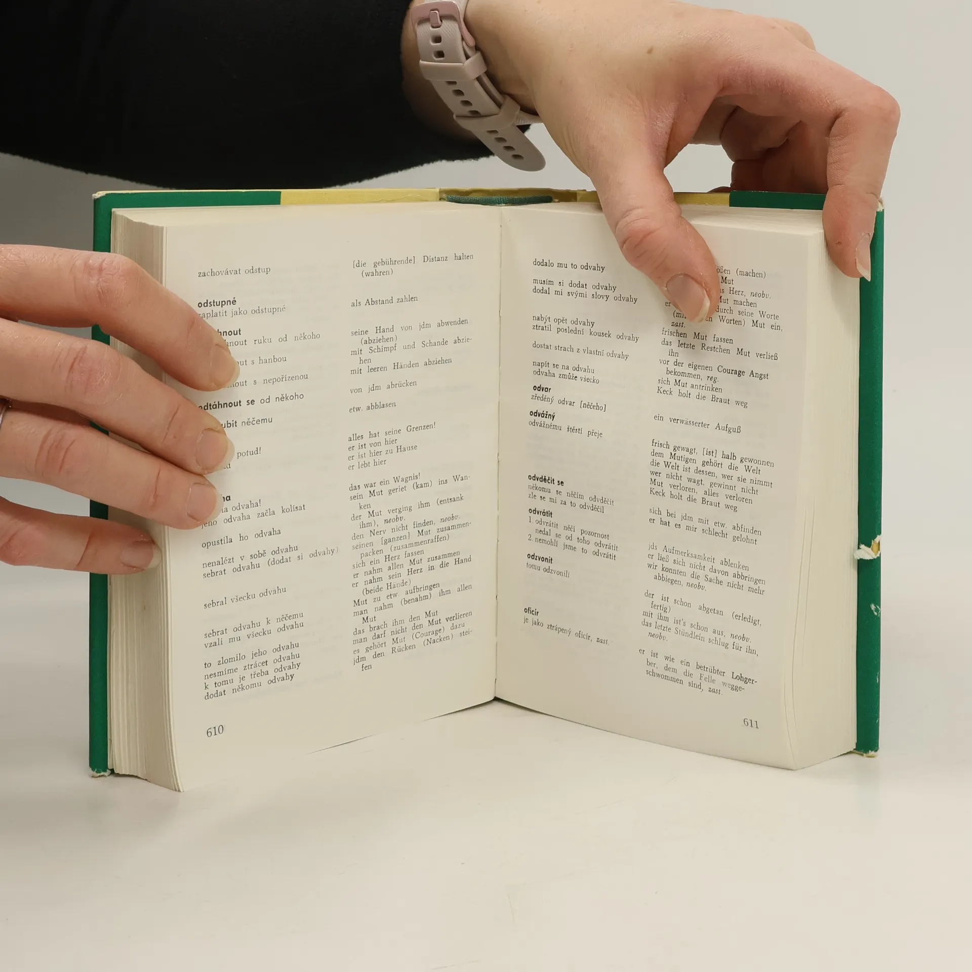 frazeologický slovník obsahuje v německé části asi 55 tisíc slovních spojení a slov, jak se vyskytují v mluveném a částečně i psaném jazyce. Je určen uživatelům, kteří dobře ovládají gramatický systém německého jazyka a osvojilisi slovní zásobu přesahující jazykové minimum. Jde oslovní spojení volná a relativně volná, která se však v dané formě často vyskytují, dále o spojení více nebo méně pevná a konečně o spojení ustálená a idiomatická. Hesla jsouuspořádána abecedně a heslový odstavec obsahuje výklad, ilustraci a konkretizaci daného hesla, frazeologická spojení a přísloví, přičemž stylistická charakteristika je označena zkratkami.