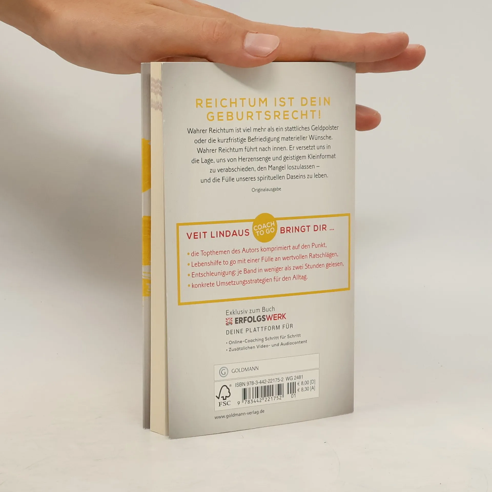 Für alle Zeitgestressten und Pulsbeschleunigten bringt Veit Lindau seine Topthemen erstmals kurz und komprimiert auf den Punkt. Das bedeutet: kompakte Lebenshilfe für unterwegs und dennoch mit einer Fülle an wertvollen Ratschlägen zu Dauerbrennern wie Erfolg, Selbstliebe oder spirituellem und materiellem Reichtum. Je Band in weniger als zwei Stunden gelesen, hält Veit Lindau uns an, das Leben zu feiern, dem Klein-klein-Denken abzuschwören, sich nicht mit dem Nächstbesten zufriedenzugeben und sich auf das große Abenteuer einzulassen, die ganz persönliche Lebensmission zu finden. Abgerundet werden diese Coaching-Impulse to go von konkreten Umsetzungsstrategien für den Alltag. Wahrer Reichtum ist viel mehr als ein stattliches Geldpolster oder die kurzfristige Befriedigung materieller Wünsche. Wahrer Reichtum führt uns nach innen in die Fülle unseres spirituellen Daseins und versetzt uns so in die Lage, uns von Herzensenge und geistigem Kleinformat zu verabschieden und den Mangel loszulassen.