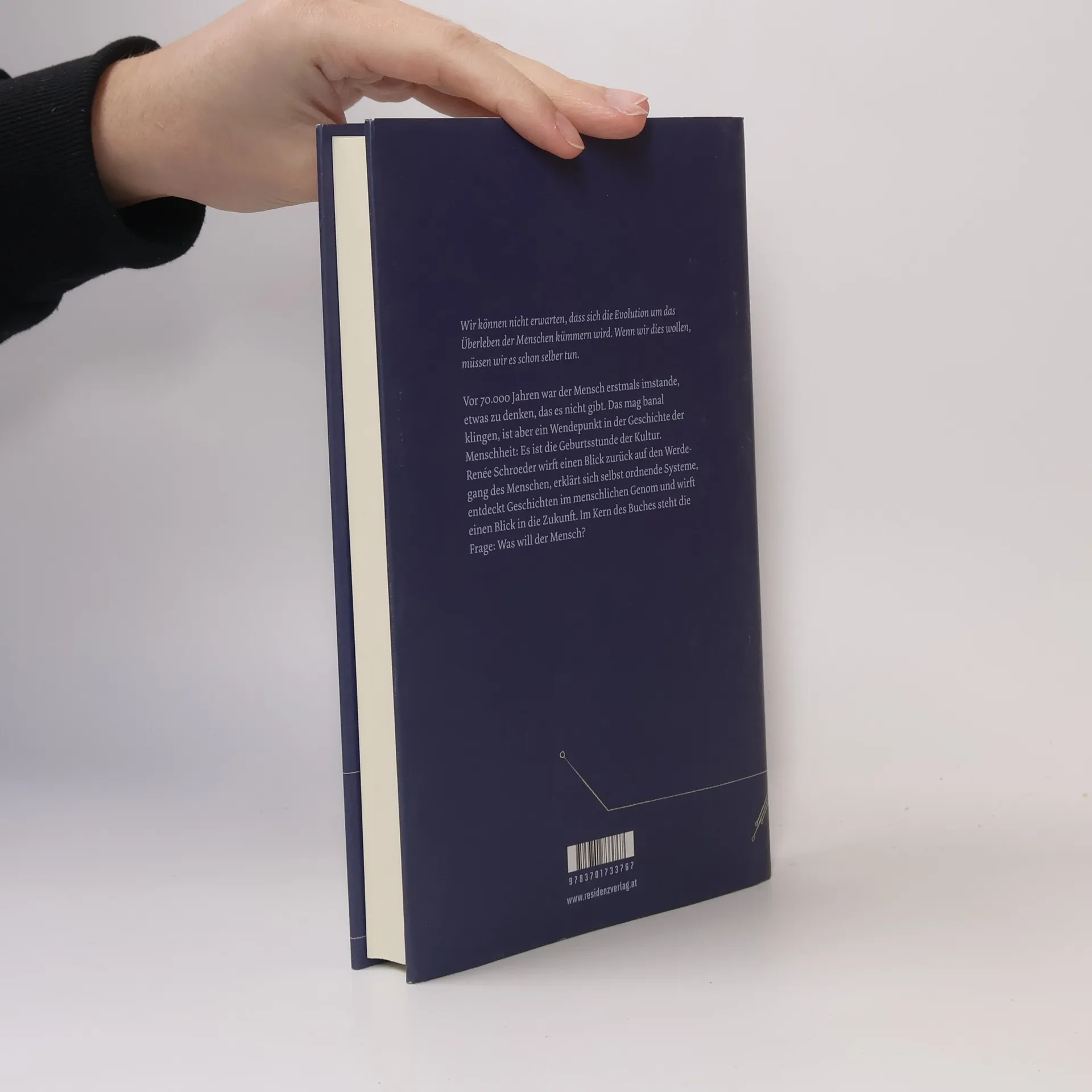 Vor 70.000 Jahren war der Mensch zum ersten Mal in der Lage, etwas zu denken, was es nicht gibt. Was banal klingt, ist die Geburtsstunde der menschlichen Kultur und der Startschuss für eine Reihe von Erfindungen, die den Menschen geprägt und nicht nur zum Besseren verändert haben. Er erdenkt Mythen, Religionen, erfindet Sprache, Geld und Rassismus. Jetzt steht der Mensch kurz vor seiner größten Erfindung: sich selbst. Denn die Wissenschaft ermöglicht es ihm, seine Evolution selbst fortzuschreiben. Renée Schroeder blickt auf die kurze Zeit, die der Mensch bisher gelebt hat, macht einen Ausflug in seine Genetik und ruft eine neue Aufklärung aus.